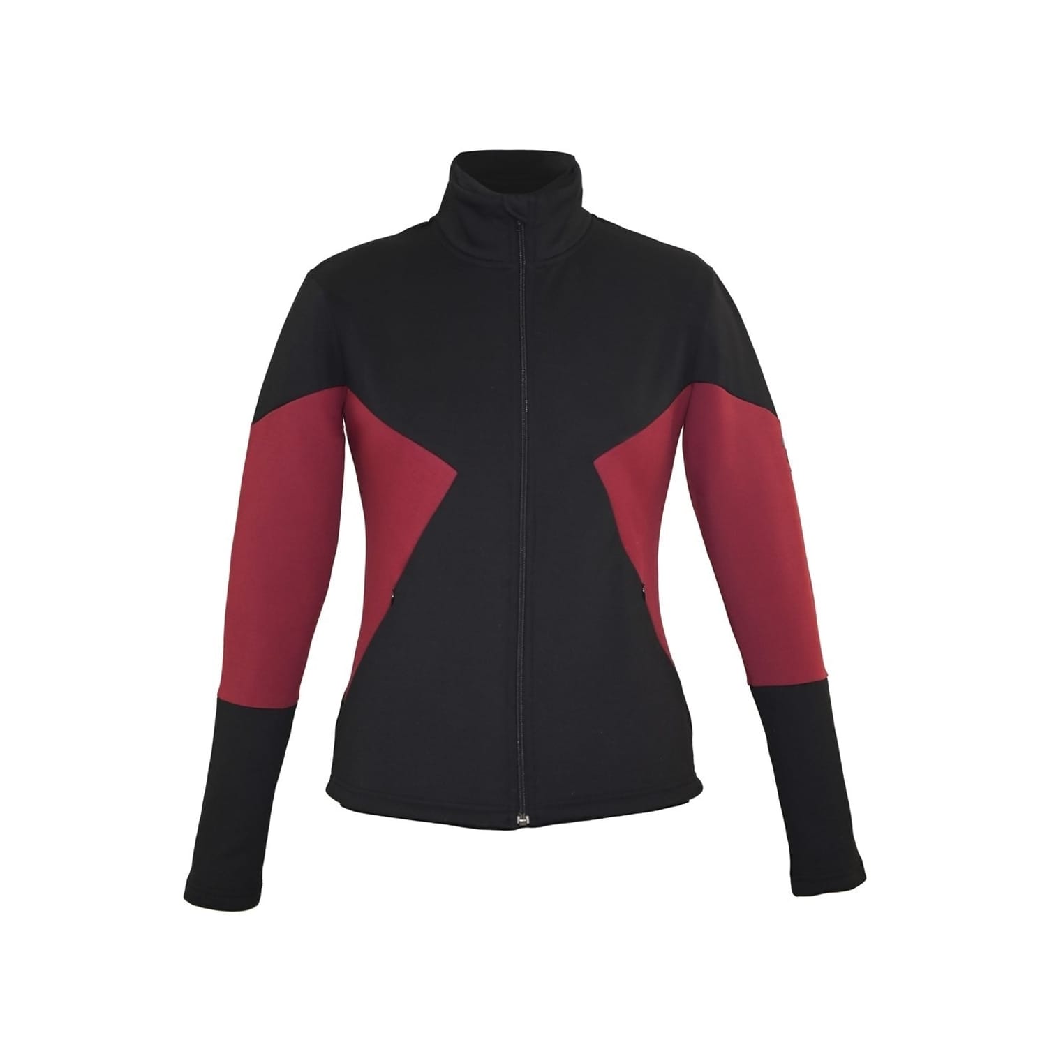 - The full-length front zipper with a protective chin guard ensures secure closure while shielding against wind and friction. Thoughtfully placed hidden phone pockets on both sides with concealed zippers blend practicality with a sleek silhouette.