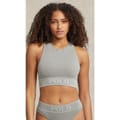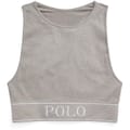 Discover the Ralph Lauren cropped top, featuring a high neck and slim fit for a sleek silhouette. The ribbed pattern adds texture, while the logo embellishment provides a touch of brand identity. Perfect for those seeking a stylish and modern addition to their wardrobe. -