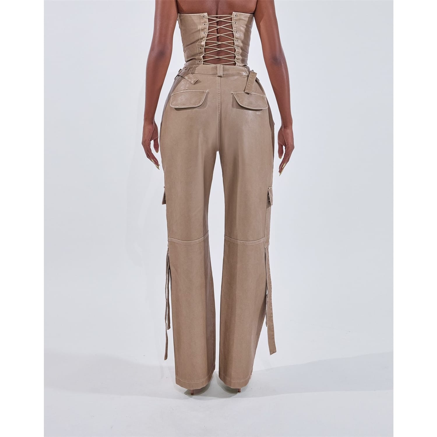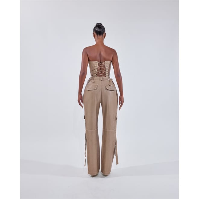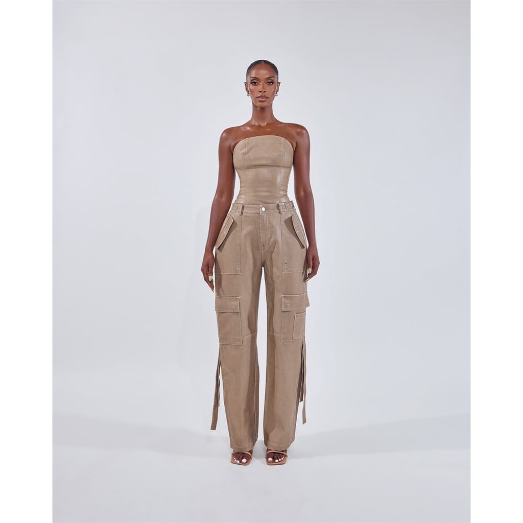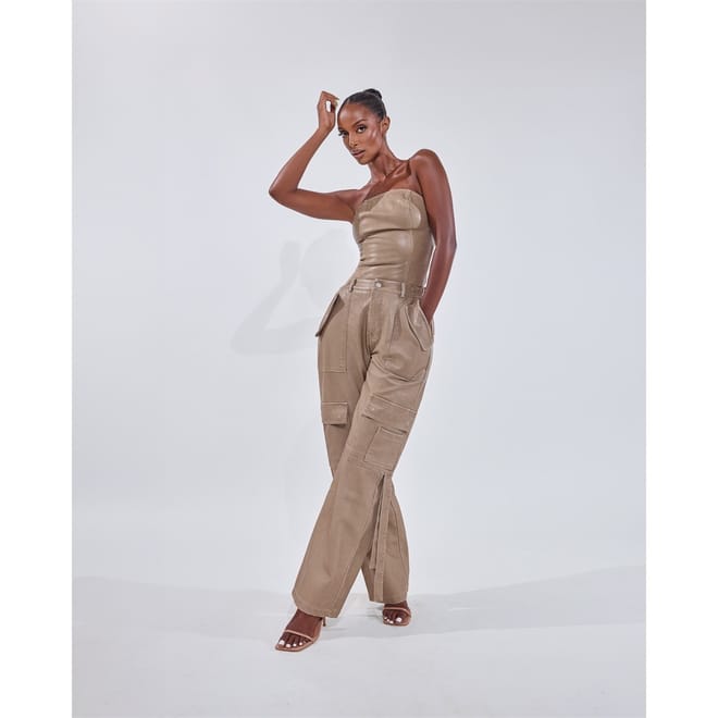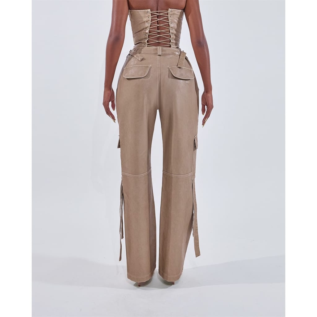 Level up your look with Mars the Label’s Zeda Cargo Trousers, crafted from premium soft faux leather that sculpts the body effortlessly. The buckle detailing ensures a modern edge, perfectly balancing the utilitarian vibe of straight-leg cargo trousers. This edgy-meets-chic combo is your go-to for rooftop drinks, street-style moments, or a standout night in the city.