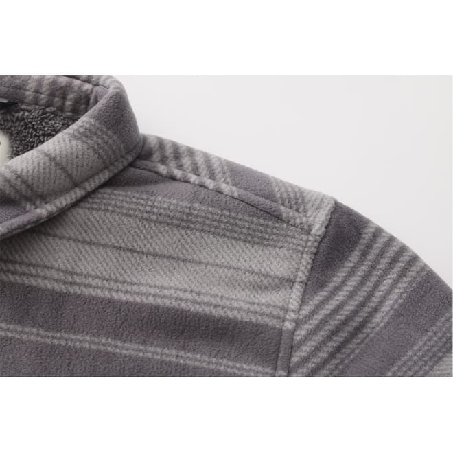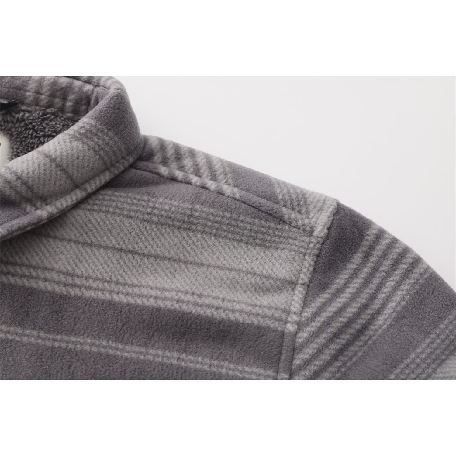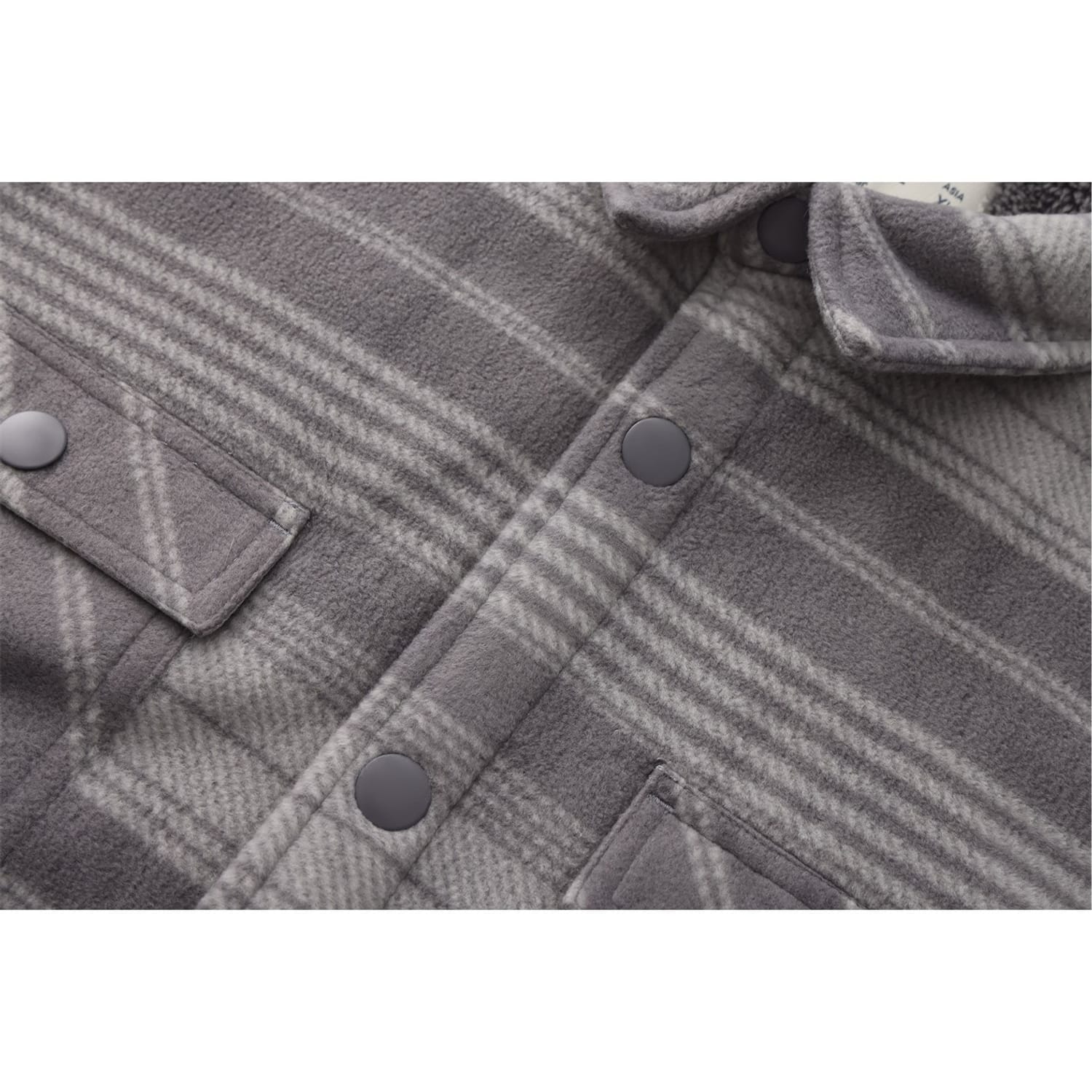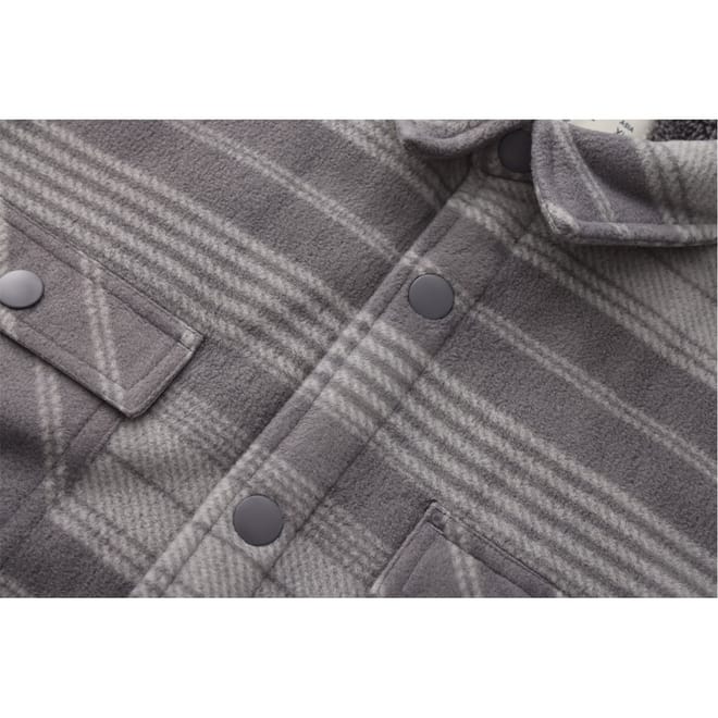 - • Classic plaid pattern with a stand collar and barrel cuffs, balancing both style and function.