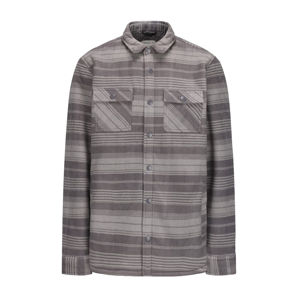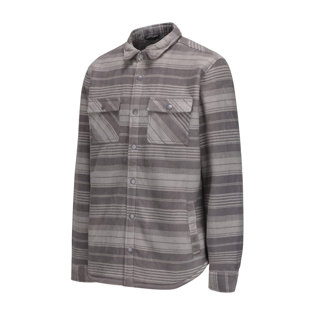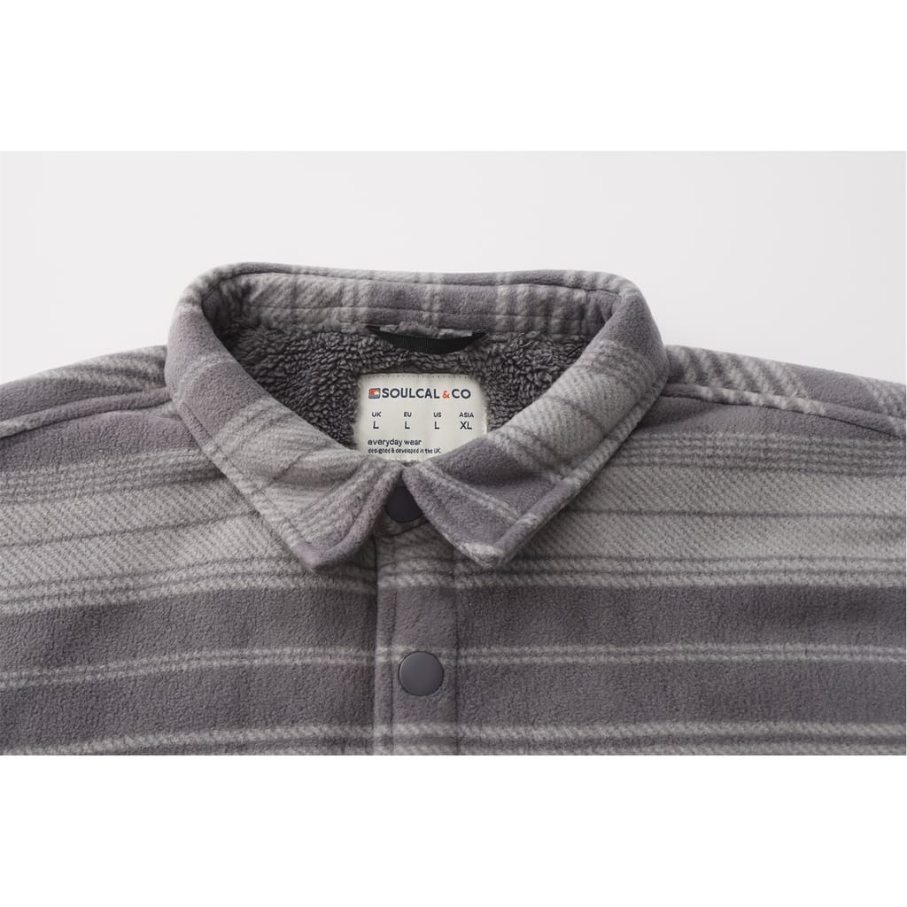 - • Classic plaid pattern with a stand collar and barrel cuffs, balancing both style and function.