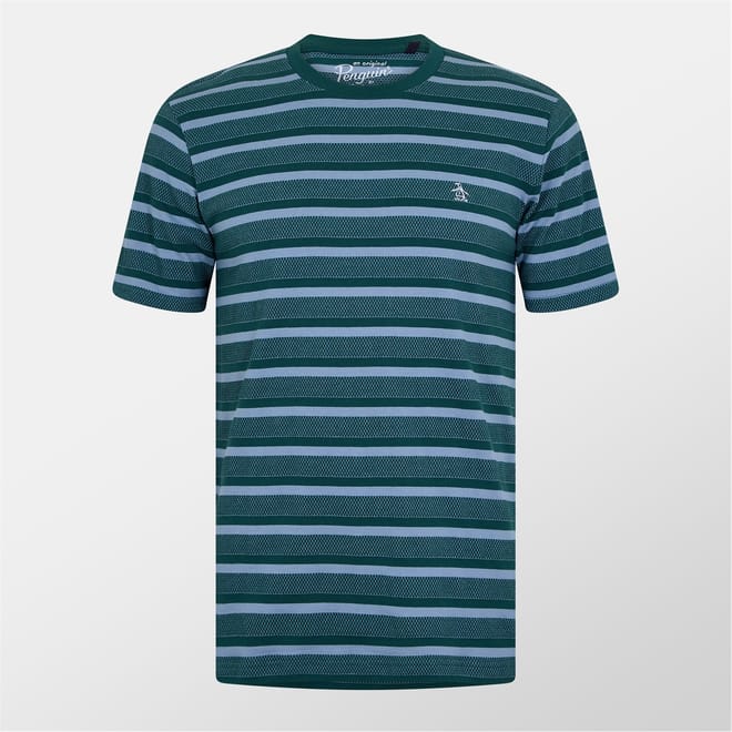 This Original Penguin top is a casual essential, featuring a regular fit and short sleeves. The crew neck design is complemented by a horizontal stripe pattern, adding a touch of style. A subtle logo embellishment completes the look, making it a versatile addition to your wardrobe. -