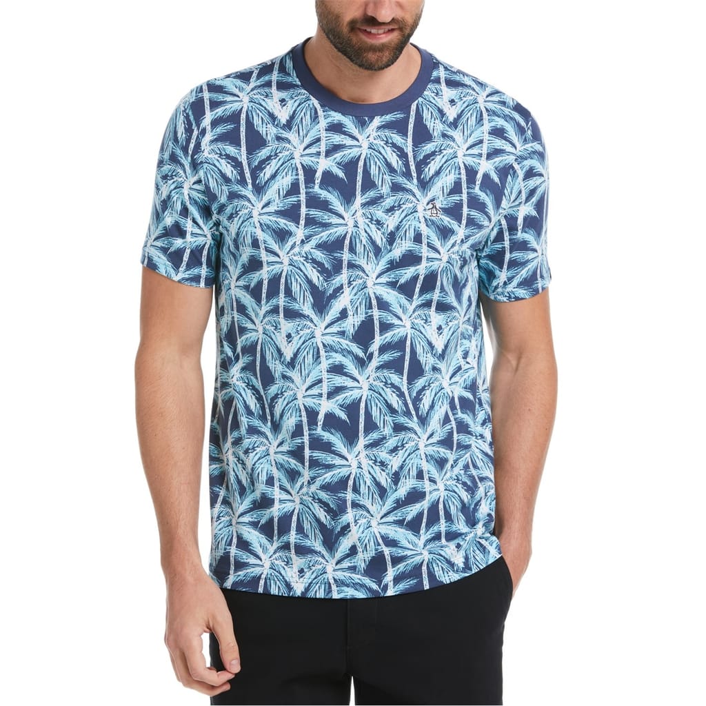 This Original Penguin top features a regular fit and short sleeves, offering a comfortable and stylish option for casual wear. The crew neck design is complemented by a graphic print, adding a touch of personality. A subtle logo embellishment completes the look, making it a versatile addition to your wardrobe. -