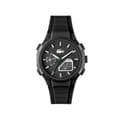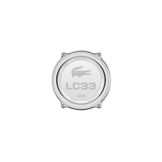 Unleash your inner crocodile with LC33. This exceptionally bold Lacoste watch is an invitation to be Confident, be Curious, be Courageous, and be Cool, capturing the fearlessness and power of the crocodile like never before. LC33 is built with both an analogue and a digital movement, and includes alarm clock, chronograph, and calendar functions via two electroluminescent digital screens. The imposing 45mm case, engineered in shatter-proof TR90, is complete with architectural pushers, and fitted with an integrated silicone strap with petit piqué embossing, while the watch face also has a textured petit piqué finish. Be Crocodile with this avant-garde timepiece, available in a spectrum of striking colour combinations:
