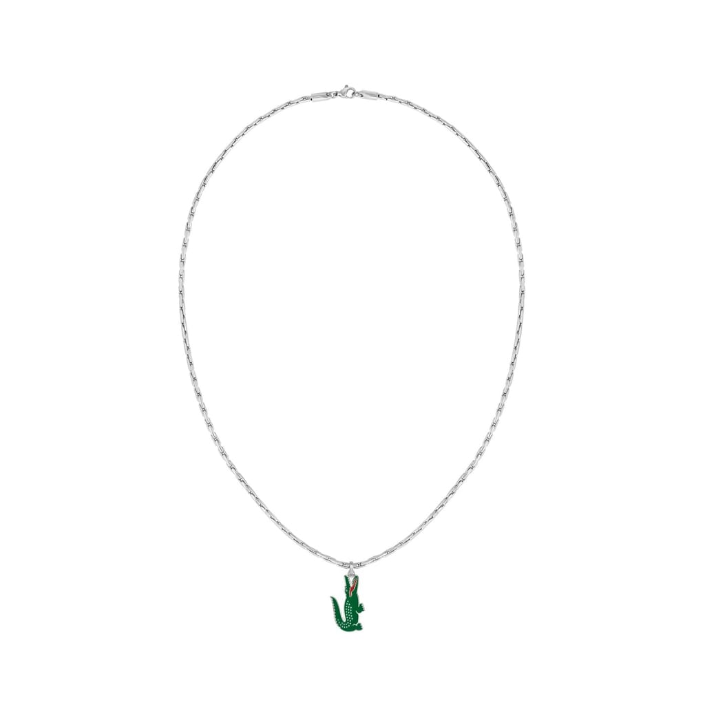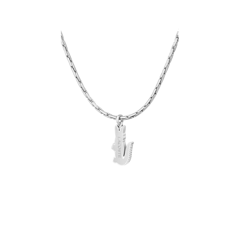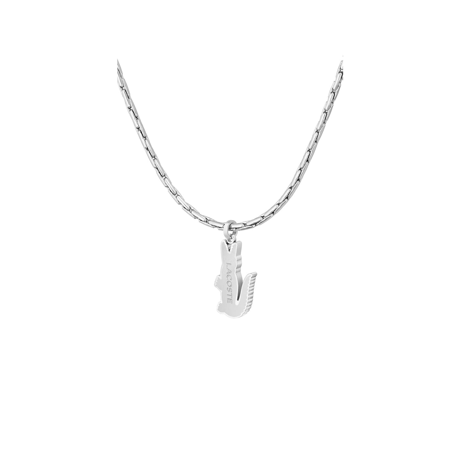 Lacoste offers playful new ways to integrate its signature crocodile into an everyday look with the Arthor jewellery collection. Fashionable and fun, this polished stainless steel box chain with reversible pendant features the brand's icon. -