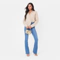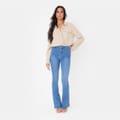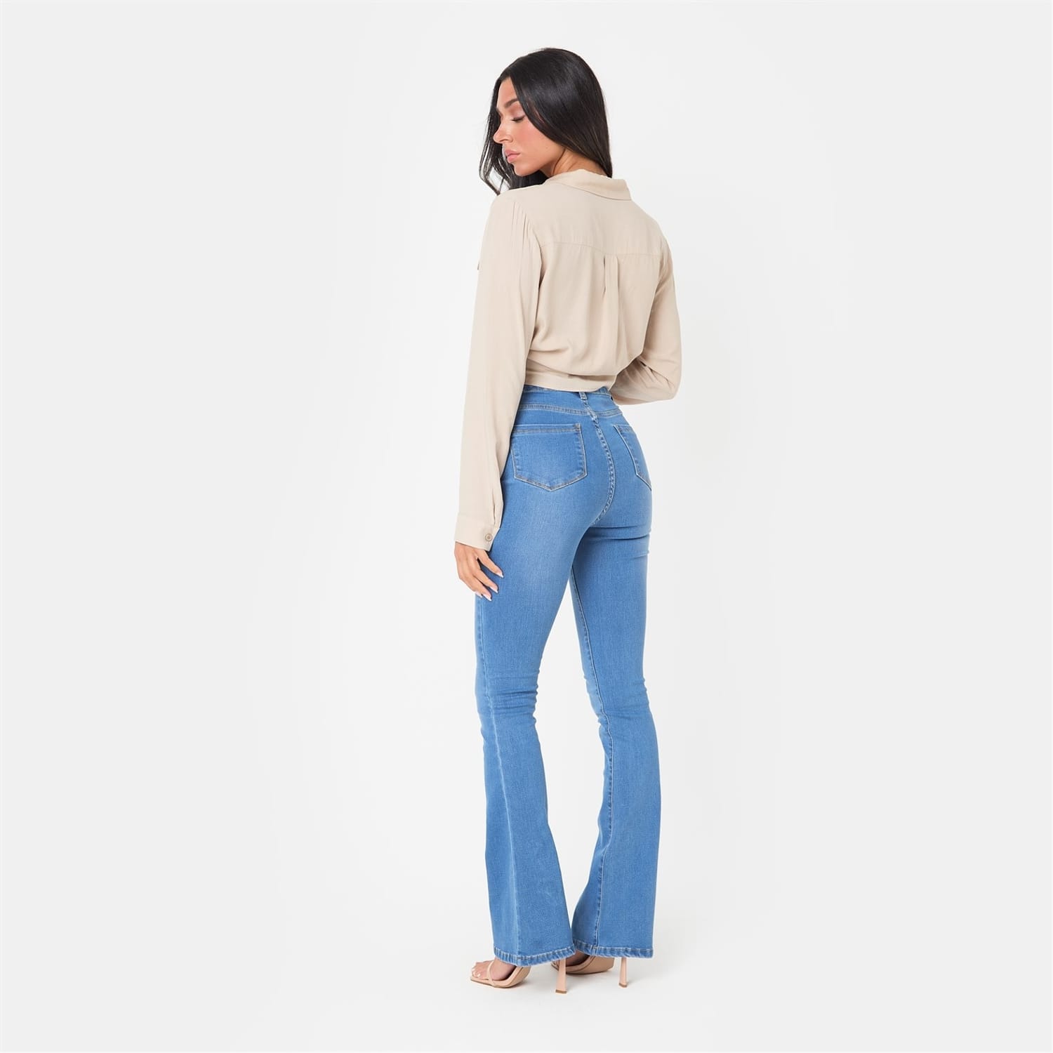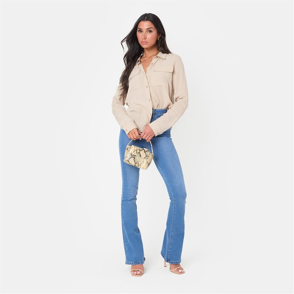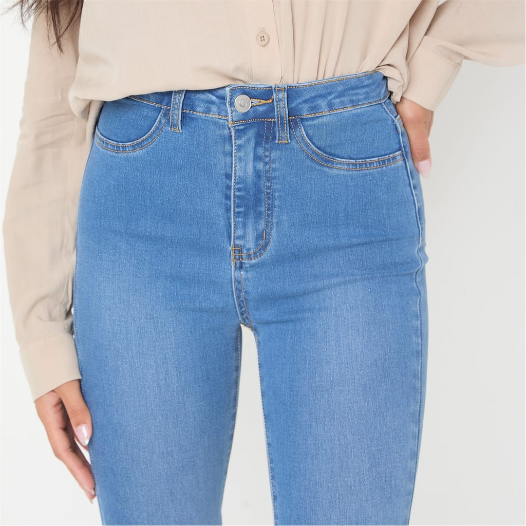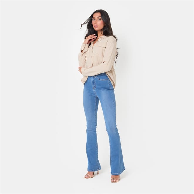 The High Waist Flare Jeans - perfect for every occasion, from casual outings to a night out, these jeans pair beautifully with everything from fitted tops to oversized sweaters. Made in a stretch denim, they provide a flattering fit that moves with you, while the flare adds the perfect balance of boldness and elegance.