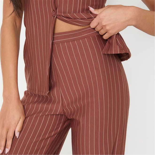 The Pinstripe Wide-Leg Trousers, a timeless staple that exudes both sophistication and effortless style. The sharp pinstripe pattern adds a touch of professional polish, while the wide-leg cut offers a relaxed yet refined silhouette that’s both flattering and comfortable. Perfectly matched back with the Pinstripe Waistcoat, can be worn day to evening, wedding guest or for work.