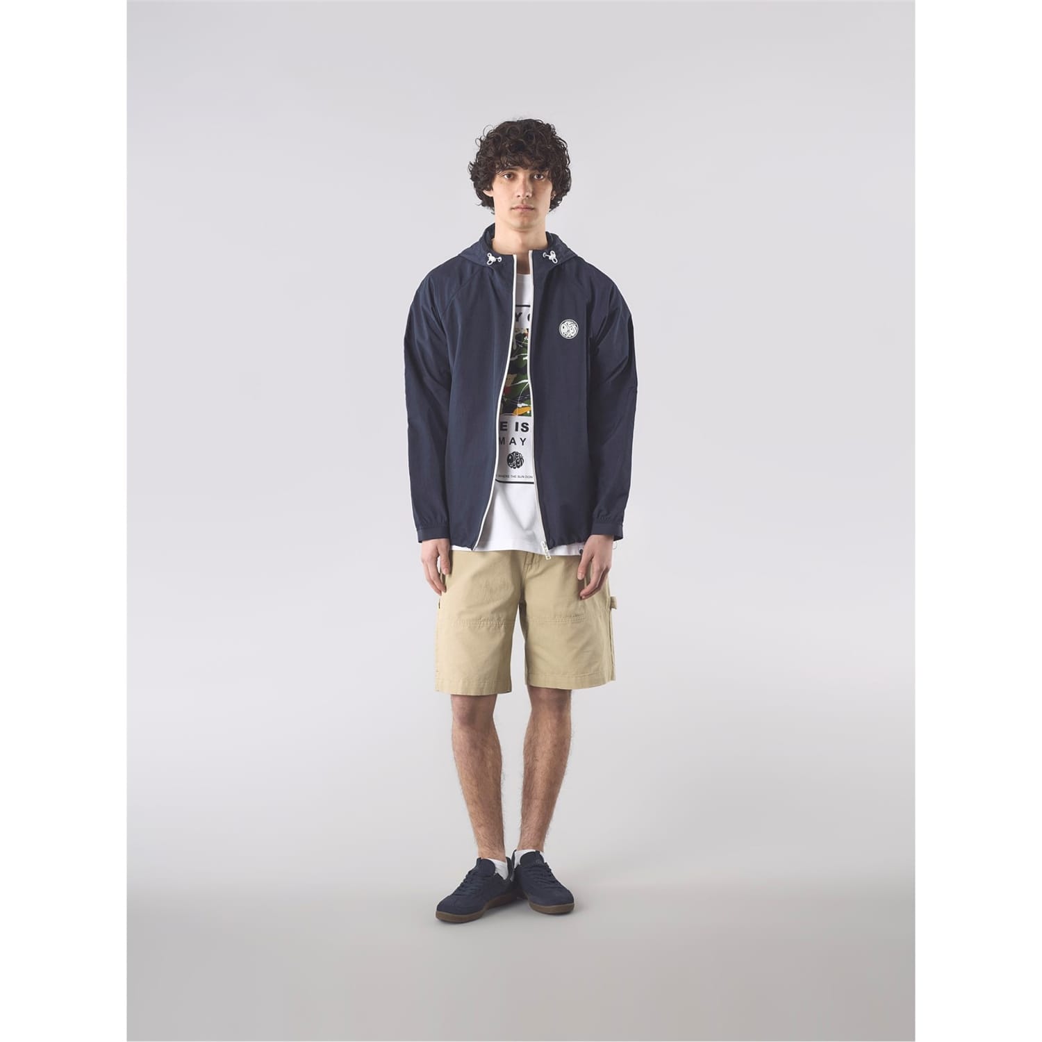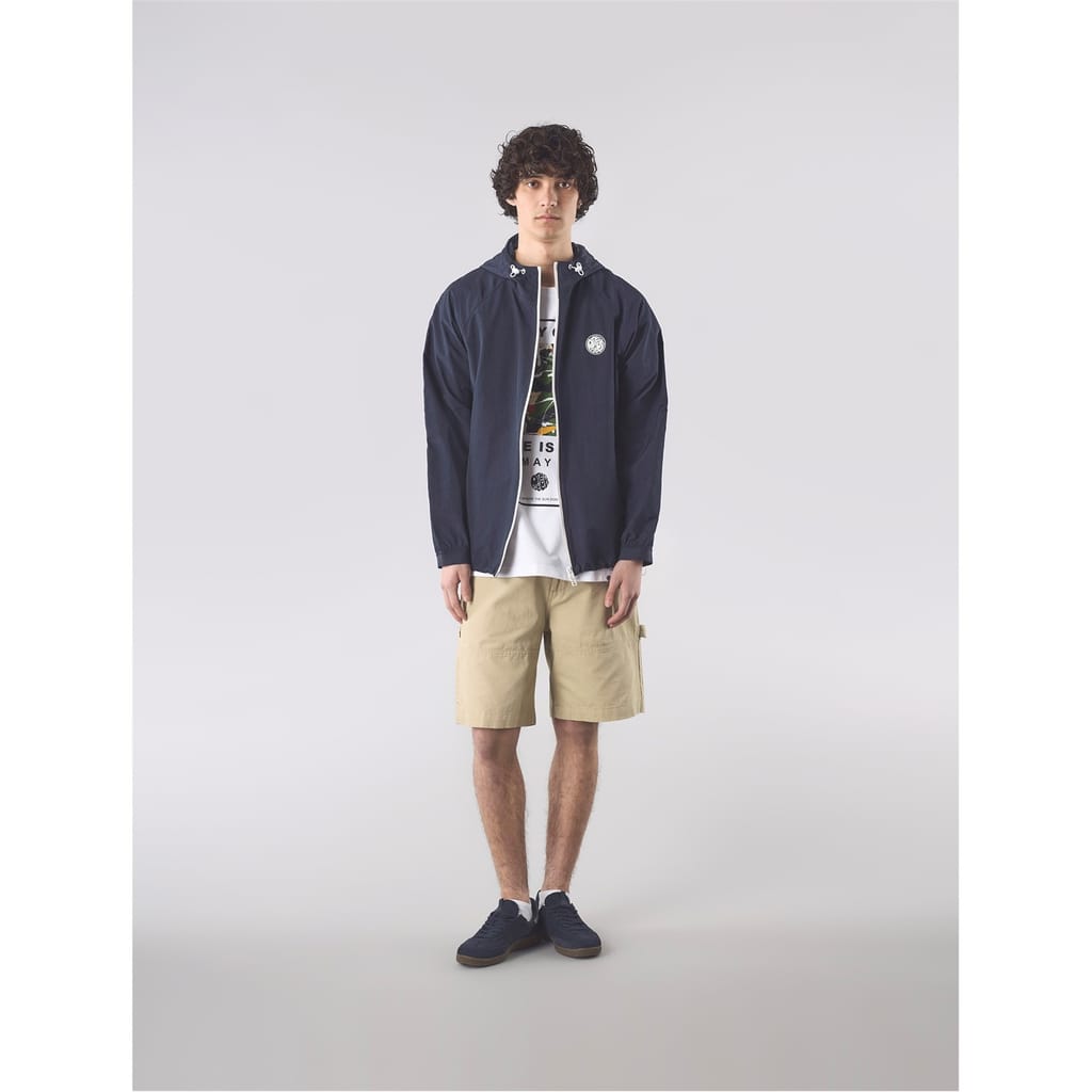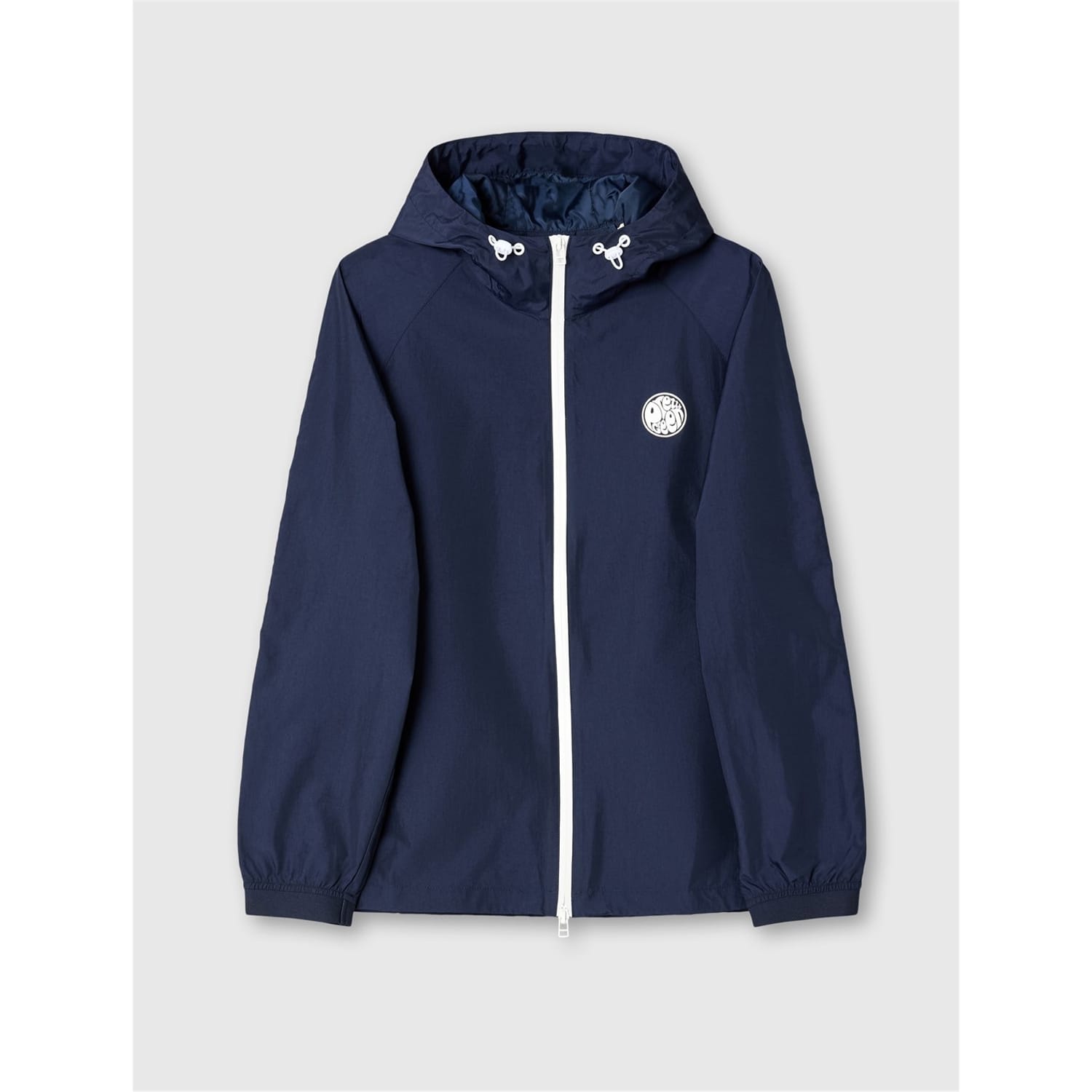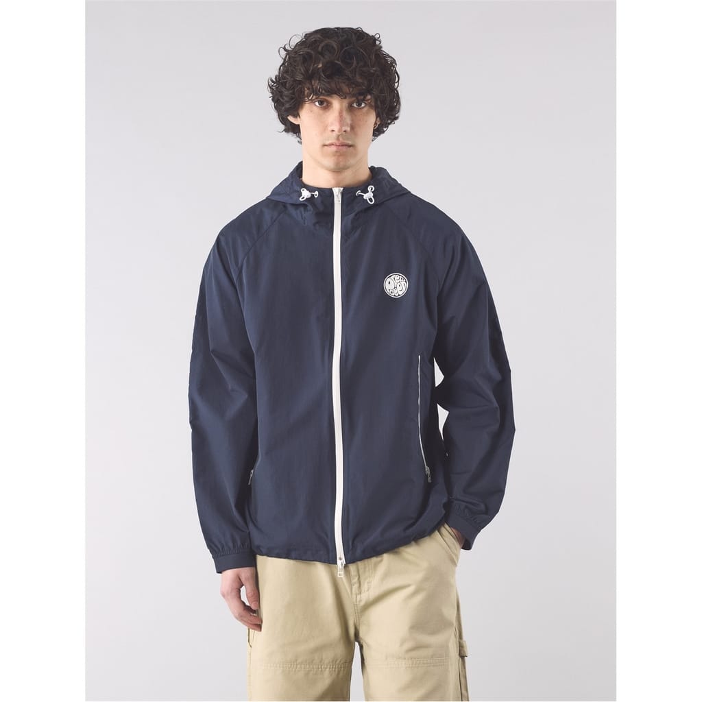 The Pretty Green Denton is a water-repellent jacket featuring a hooded design and a zipper closure. It offers a regular fit with a straight hem and elasticated cuffs. The solid pattern is complemented by logo embellishments and practical pockets, making it a functional choice for wet weather. -