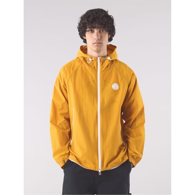 The Pretty Green Denton rain jacket is designed for practicality and style. Featuring a hooded neckline and a water-repellent finish, it ensures protection against the elements. The jacket has a regular fit with a zipper closure, elasticated cuffs, and a straight hem. A solid pattern with a logo patch adds a touch of brand identity. -