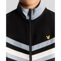This Lyle & Scott track jacket features a full zipper closure and a regular fit, offering both style and comfort. The jacket showcases a colour block pattern, complemented by ribbed cuffs and hem for a snug finish. A logo embellishment adds a touch of brand identity, making it a versatile addition to your wardrobe. -