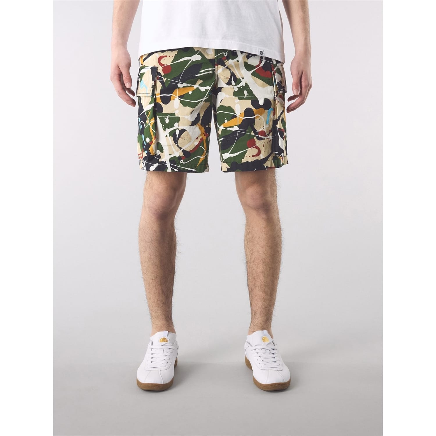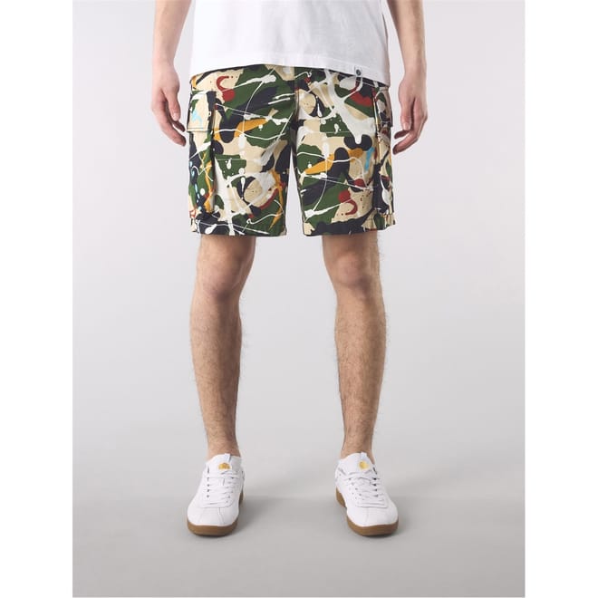 These Pretty Green cargo shorts feature an abstract pattern, offering a stylish twist to a classic design. Equipped with a practical drawstring closure and multiple pockets, they provide both comfort and functionality. Ideal for casual outings, these shorts are a versatile addition to any wardrobe. -