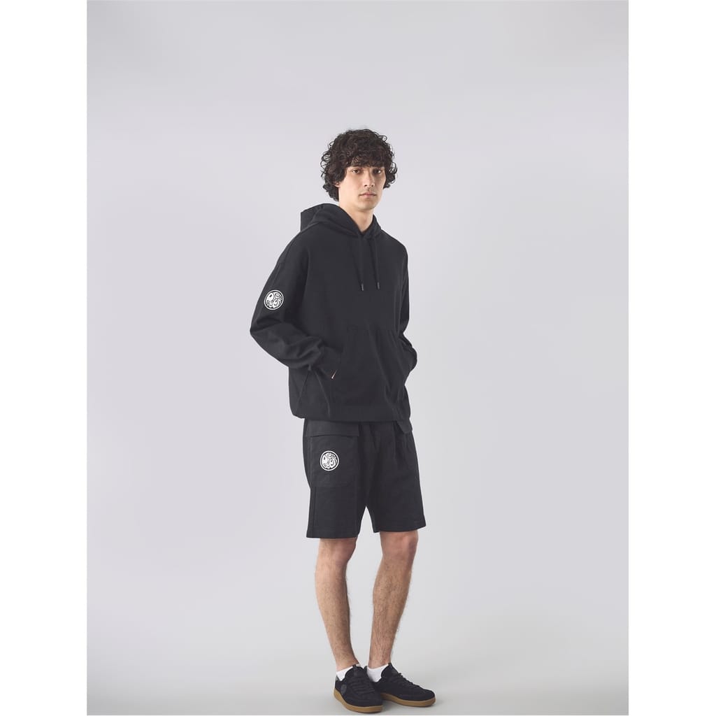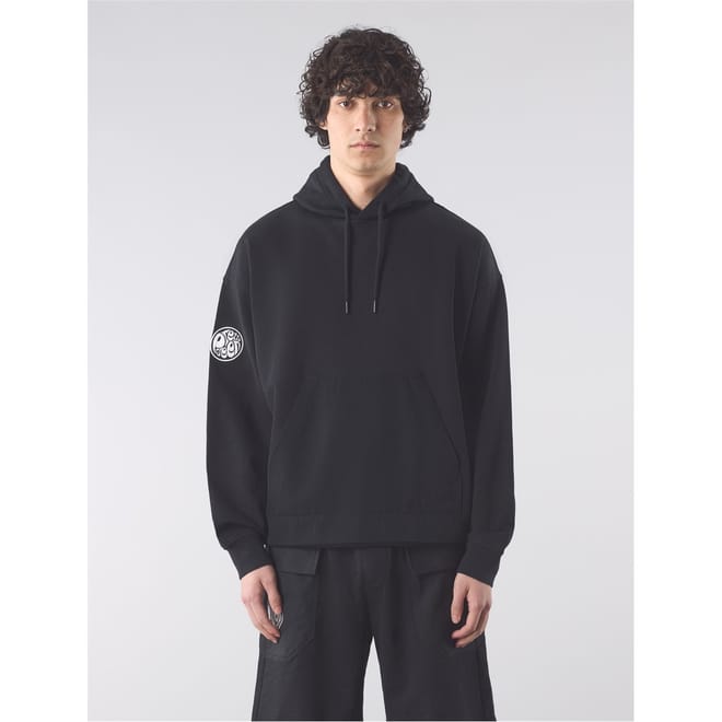This Pretty Green top is a casual essential, featuring a hooded design with a drawstring closure. The long sleeves and relaxed fit ensure comfort, while the ribbed cuffs add a touch of style. Embellished with a logo and pocket, this solid-patterned top is perfect for a laid-back look. -