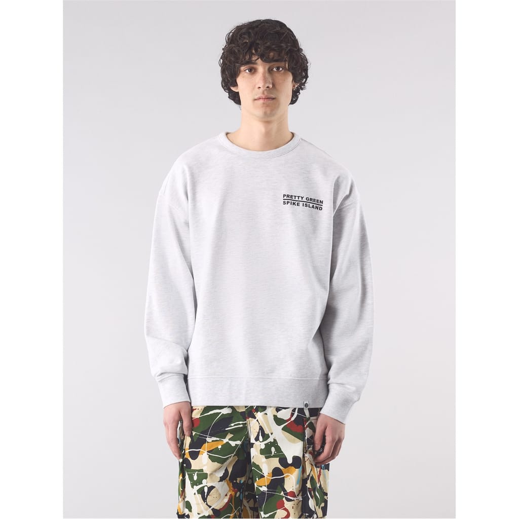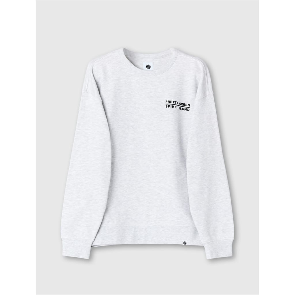 This Pretty Green top features a striking graphic print with lettering, offering a unique style. The long sleeves and ribbed cuffs provide a comfortable fit, while the crew neck adds a classic touch. The regular fit ensures ease of wear, and the spiked embellishments add an edgy detail. A logo completes the design, making it a standout piece in any wardrobe. -