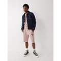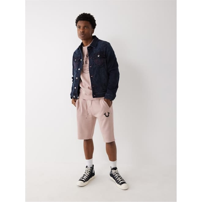 True Religion denim jacket features a classic shirt collar and a button closure. Designed in a regular fit, it showcases a solid pattern with distinctive logo embellishments. The jacket includes practical pockets and detailed stitching, complemented by a straight hem for a timeless look. -