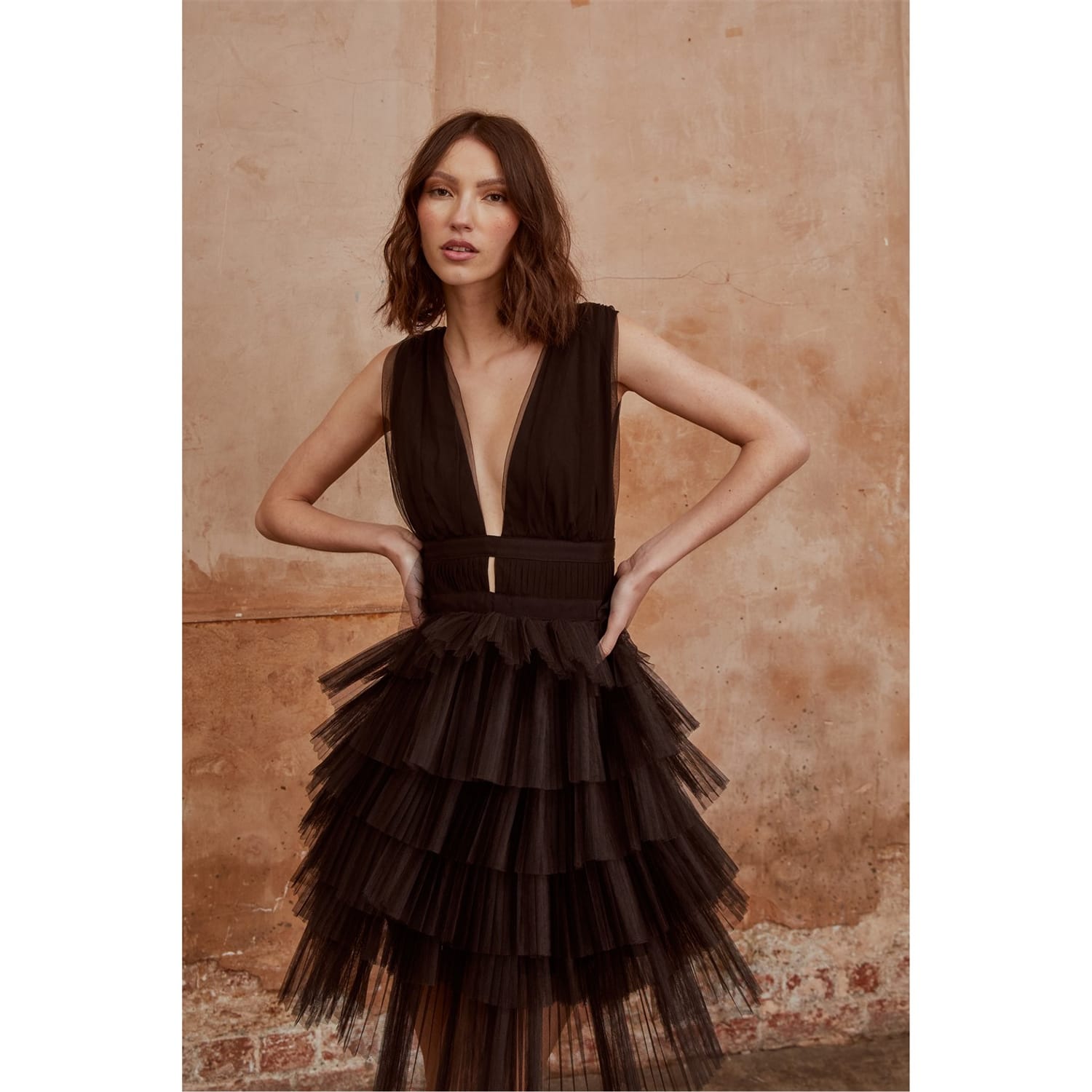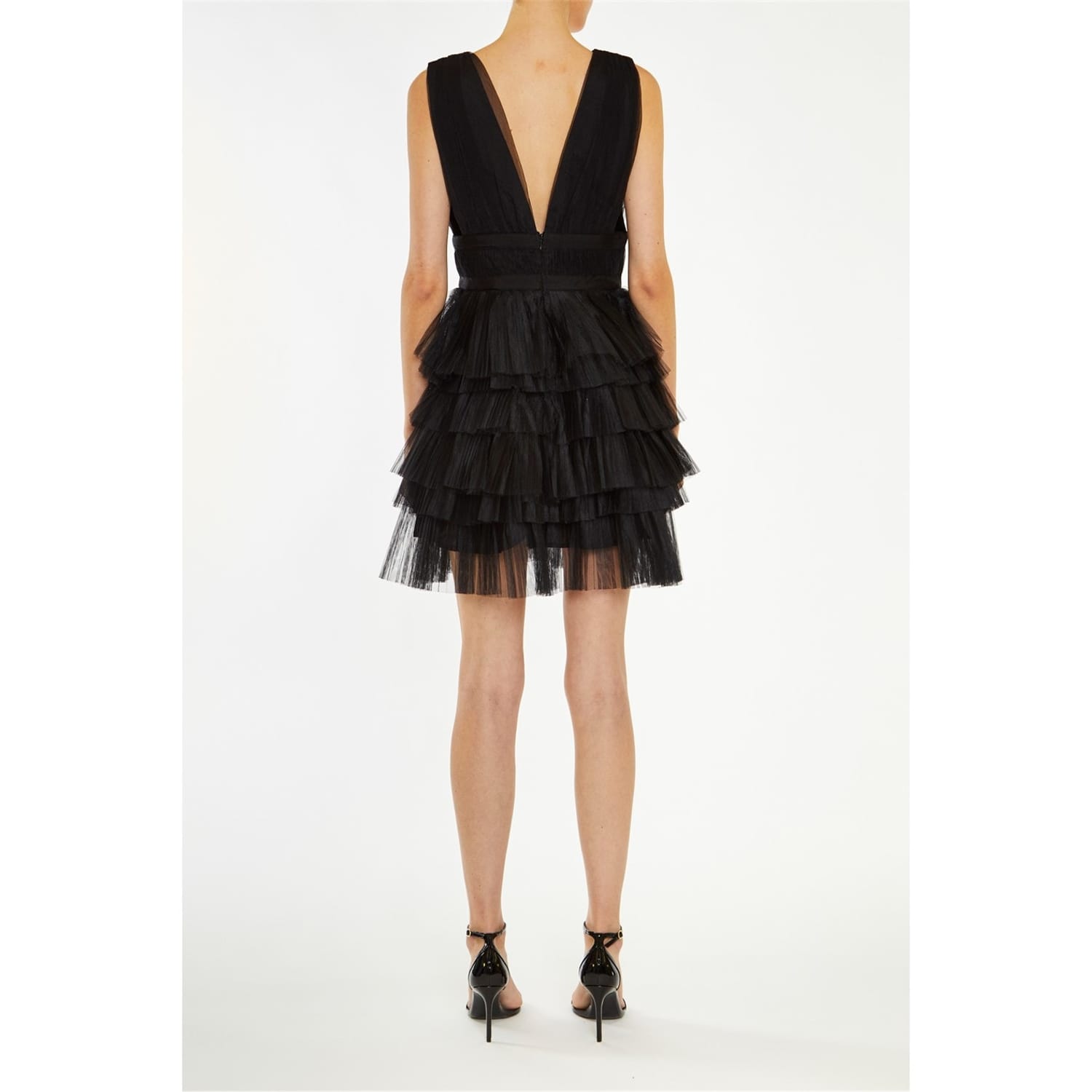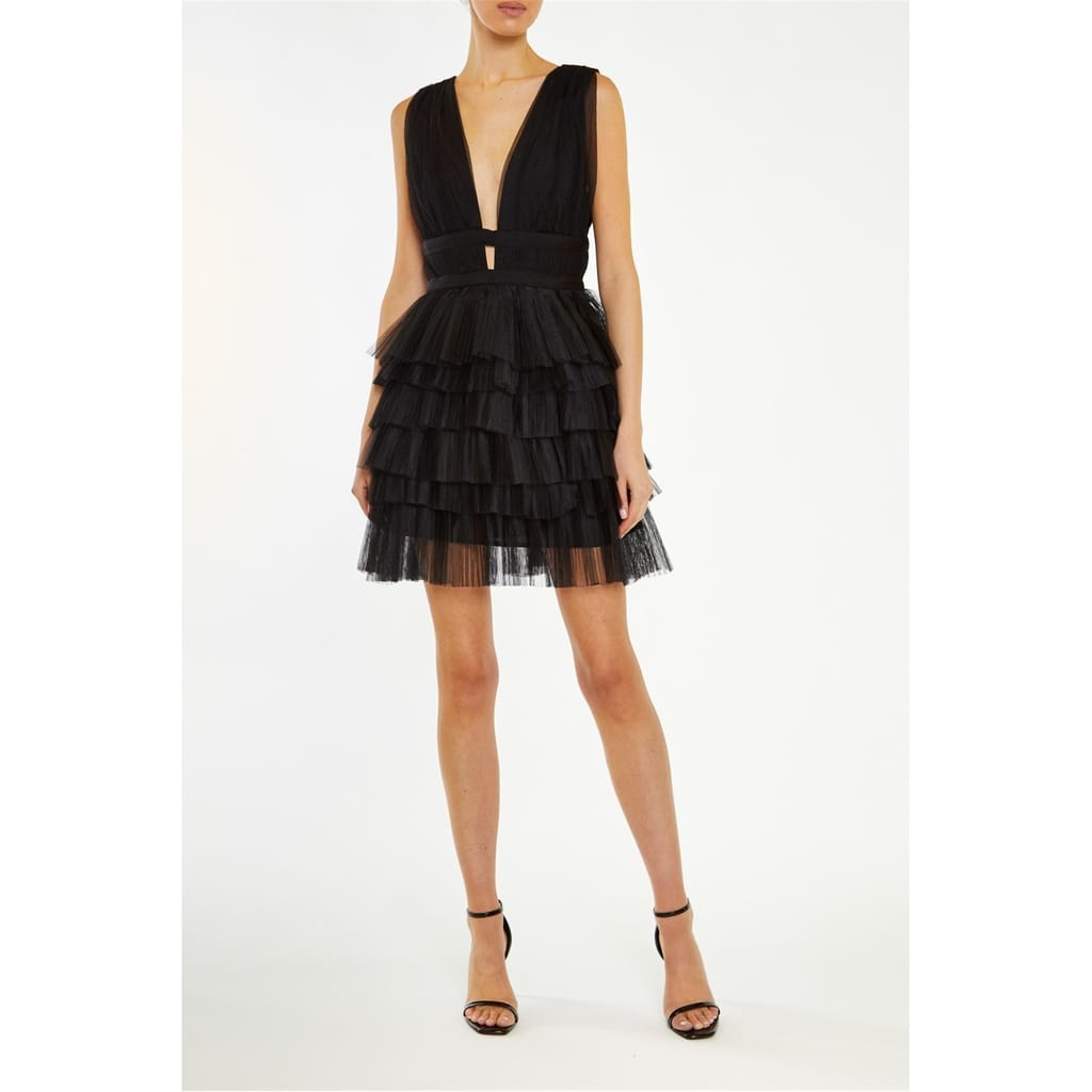 Black Plunge-Front Tiered Tulle Mini-Dress from the latest True Decadence Collection.