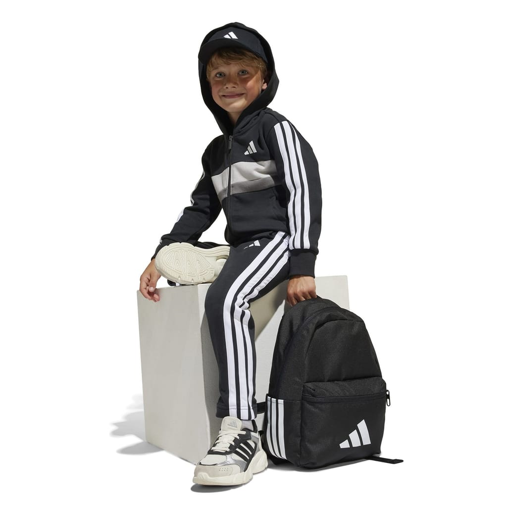 Let kids explore the seasons. This kids' adidas track suit is made with fleece to help them stay warm during the colder months. A soft hood helps block out the chill. The pants adjust with a drawcord for a stay-put fit. Of course, the sporty 3-Stripes are a winner all year round. -