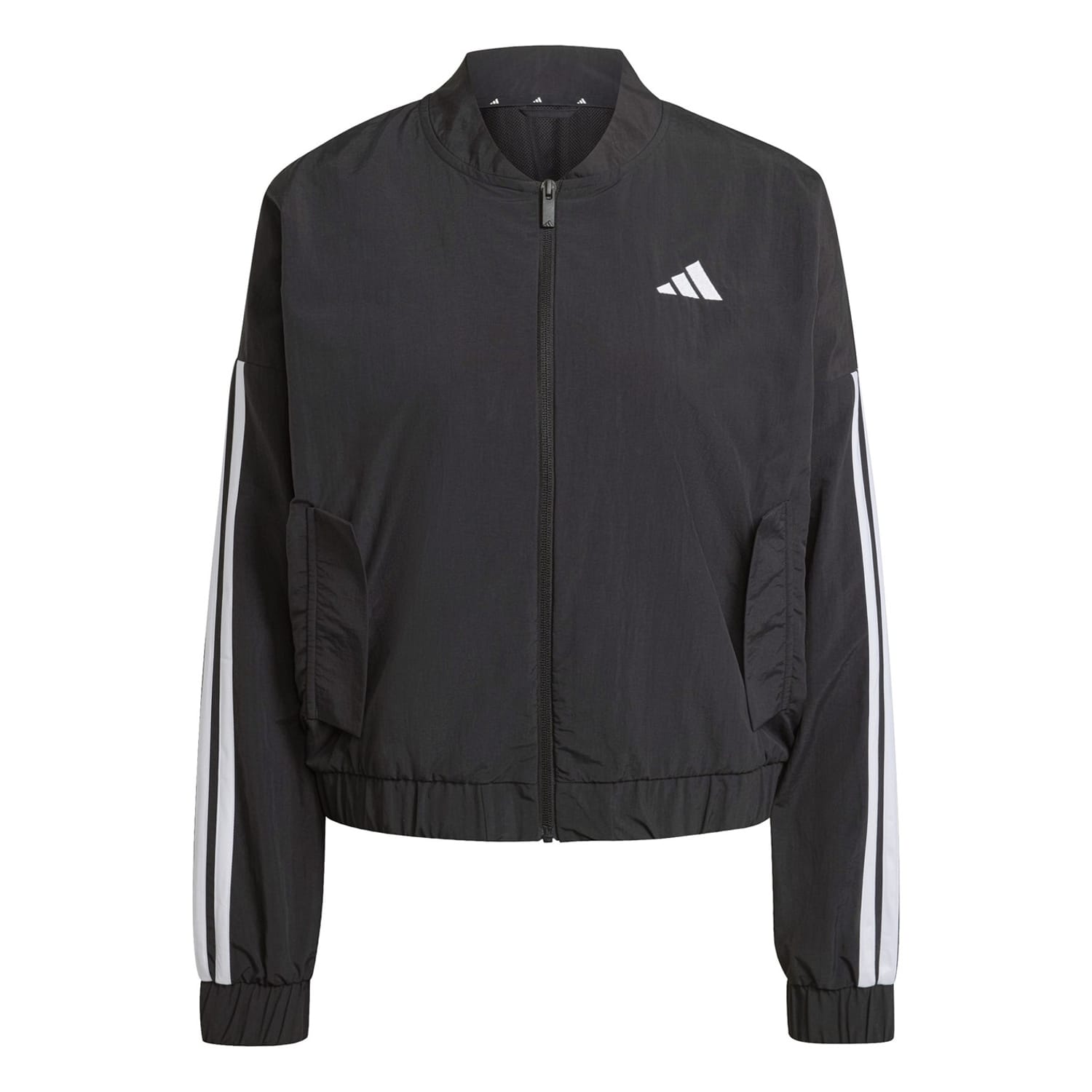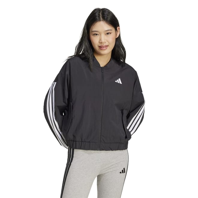 Complete your ensemble with a sporty edge in the adidas 3-Stripe Woven Bomber Jacket for women. Constructed with elasticated cuffs to lock in the warmth and keep out the cold, the jacket is ideal for casual off-duty days or when you're about to hit the gym to workout.