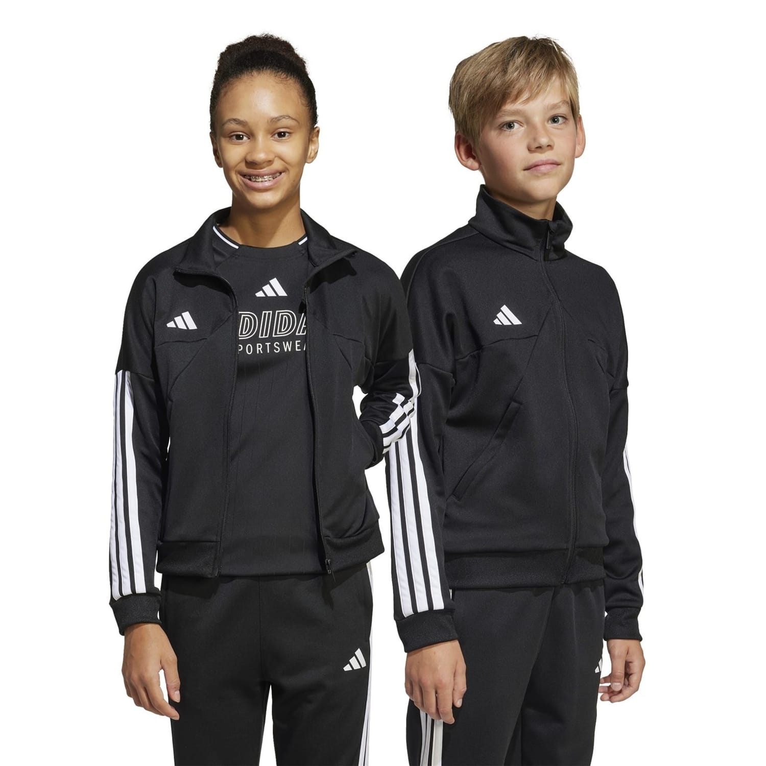 Entrance or exit, this juniors' adidas track top turns heads. Classic 3-Stripes and a 3 Bar Logo on the chest show off your love for the beautiful game. Zip pockets keep essentials secure so you can focus on leaving a mark. -