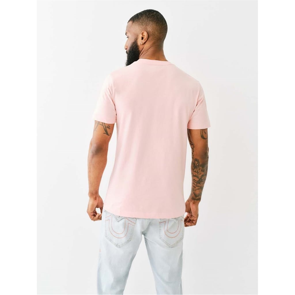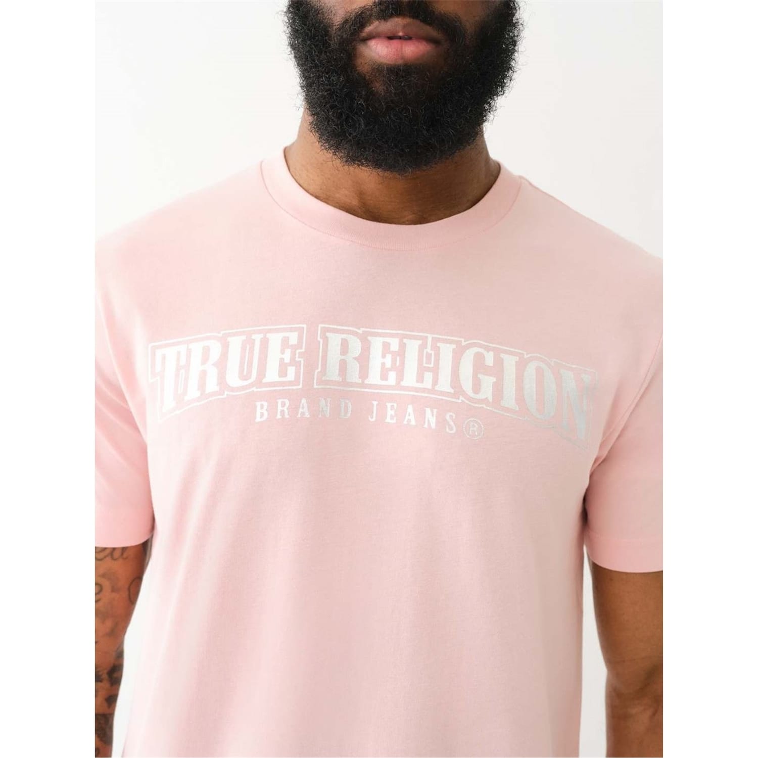Discover the True Religion top, a casual staple featuring a crew neck and short sleeves. This regular fit piece is adorned with a graphic print and lettering, complemented by a logo embellishment. Perfect for adding a touch of style to your everyday wardrobe. -