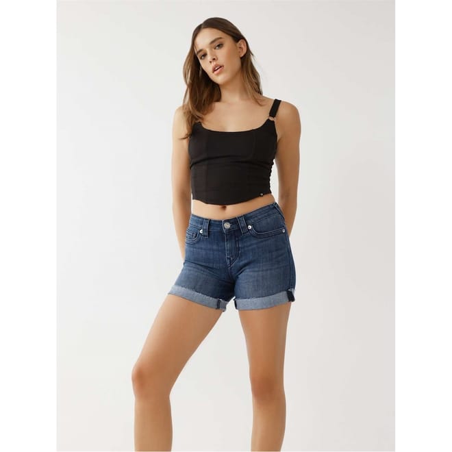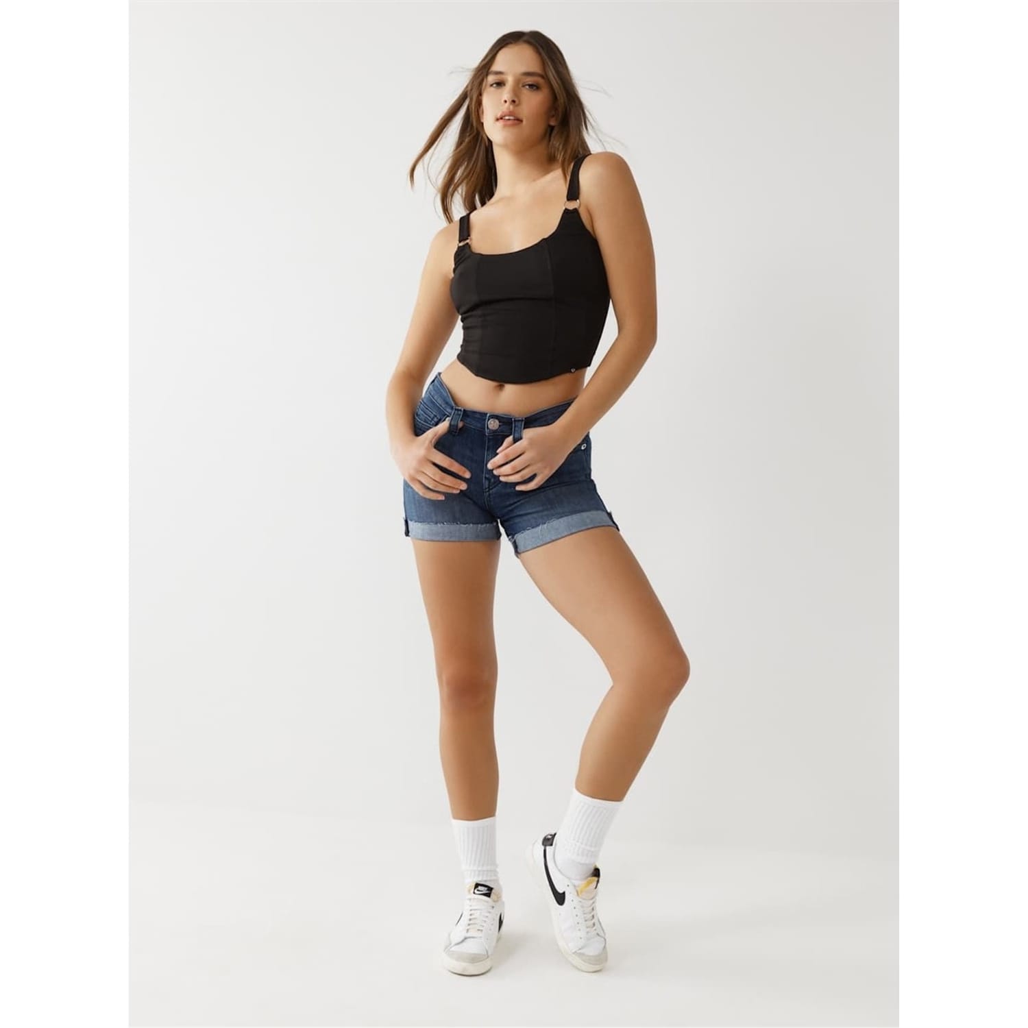 Discover the True Religion Jayde shorts, a solid jean style crafted for casual wear. These shorts feature a button and zip fly closure, offering a secure fit. Designed with both front and back pockets, they provide practicality without compromising on style. Perfect for those seeking a blend of comfort and functionality in their wardrobe. -