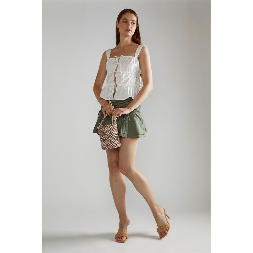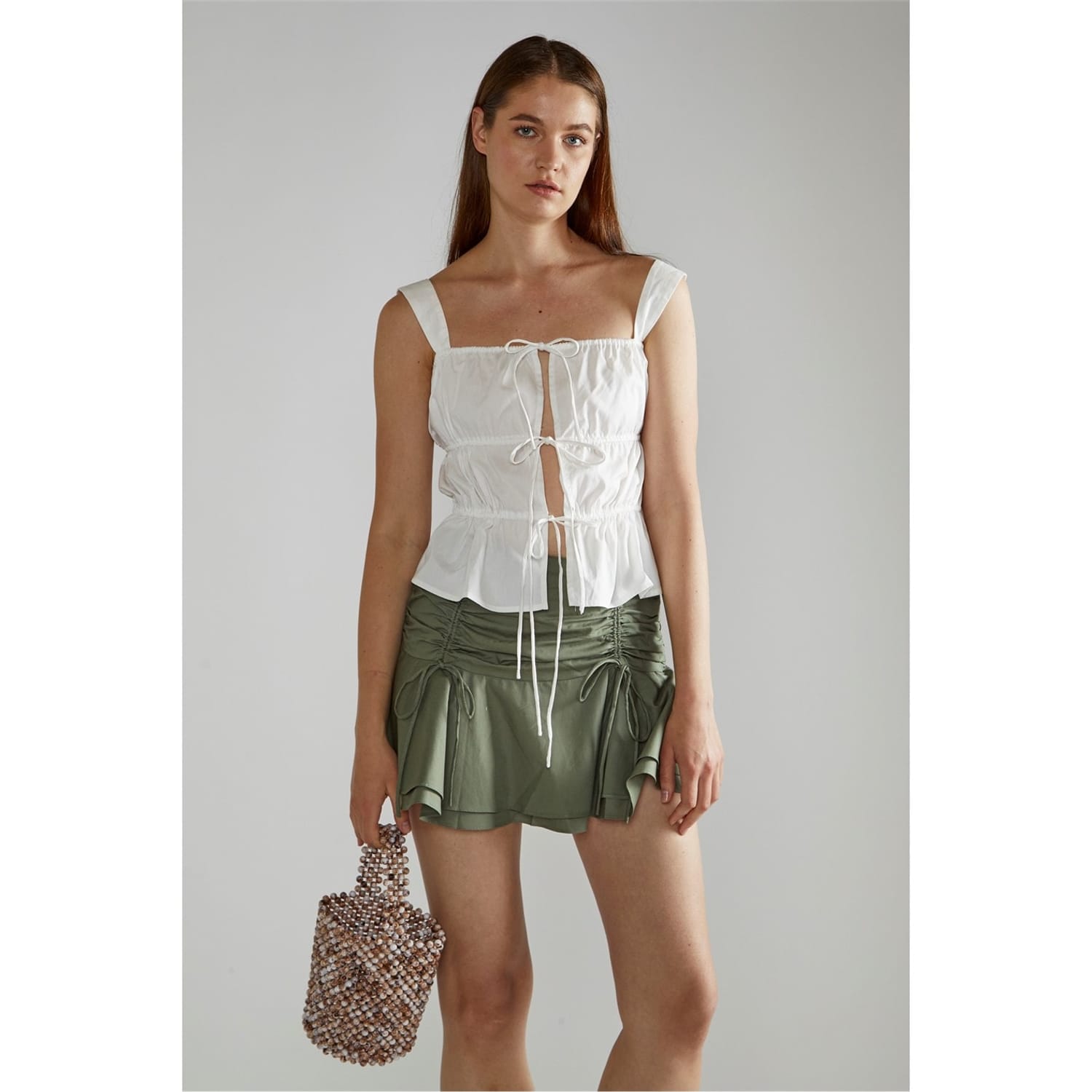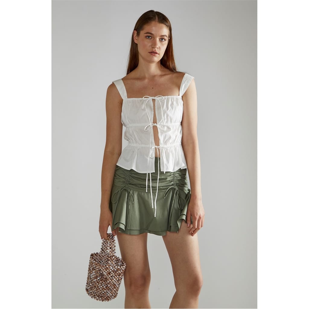 Narrated Women's White Square-Neck Sleeveless-Top. This white square-neck sleeveless top is like a breath of fresh air for your wardrobe. It's the kind of piece that makes you feel put-together without any fuss. The square neckline adds a modern twist, framing your face beautifully and giving the top a unique edge. But the real fun begins with the tie front detail - it's not just cute, it's also functional! Adjust it to your liking for a perfect fit every time. This top is a true summer staple, ready to keep you cool and stylish on even the warmest days. It's like having a secret weapon in your closet, effortlessly pairing with everything from your favourite jeans to flowy skirts. Dress it up with statement jewellery for a night out, or keep it casual with denim shorts for a picnic in the park. This versatile little number is sure to become your go-to for those I have nothing to wear moments, always ready to save the day with its simple charm and endless styling possibilities.