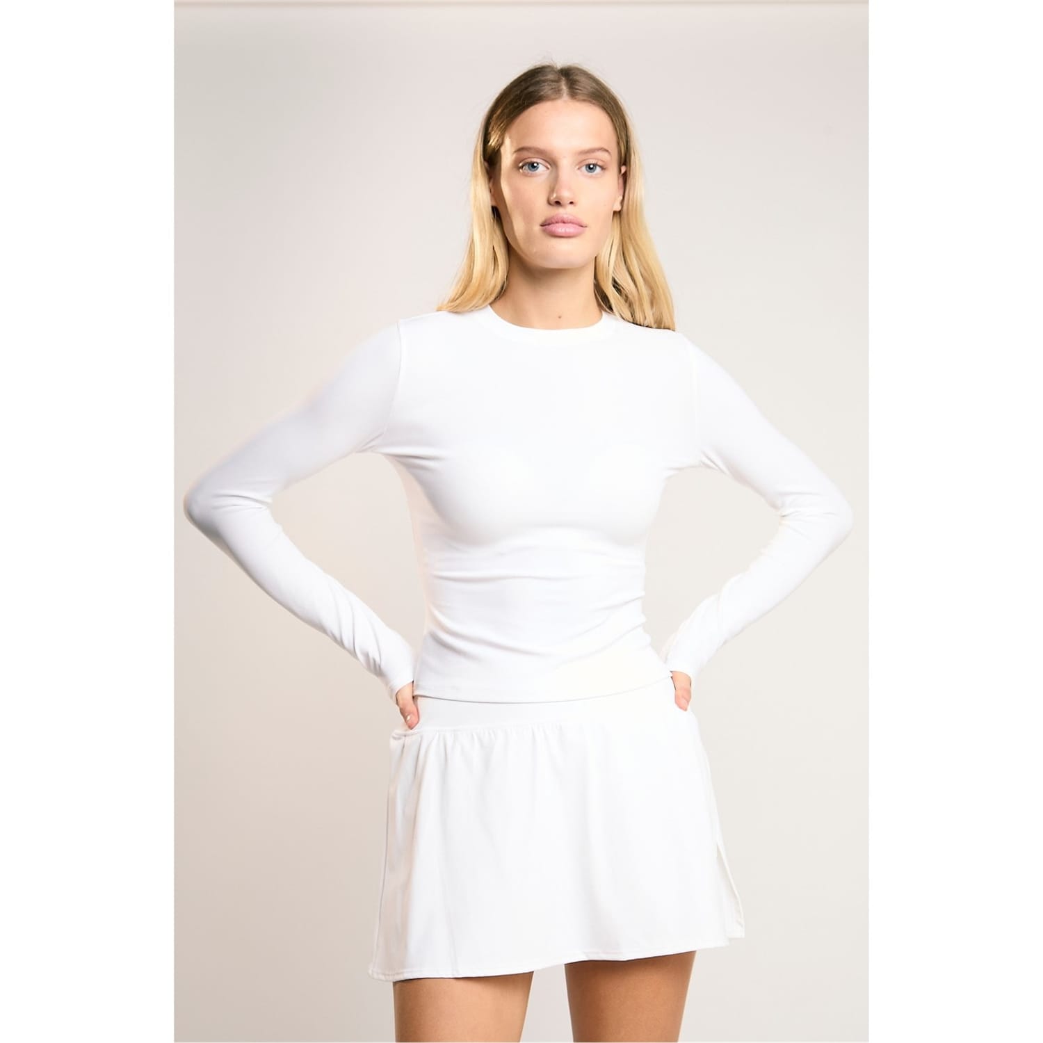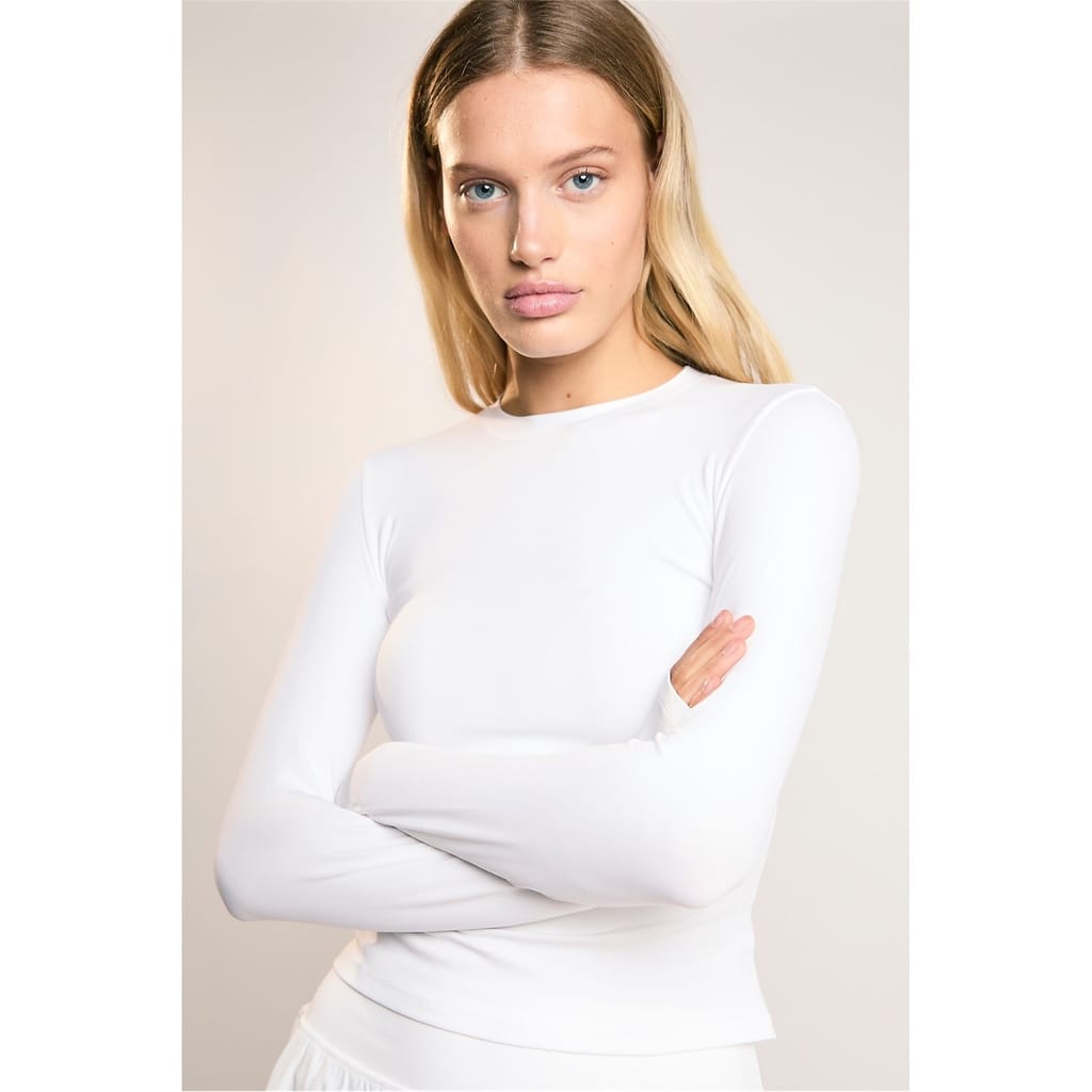 Agon Women'S Signature White Long-Sleeve- Top. Enhance Your Wardrobe With Our Signature Long-Sleeve Top From The Agon Signature Range. This Everyday Essential Is A Perfect Blend Of Comfort And Style, Designed To Support You Through All Your Daily Activities. The Smooth Finish Fabric Feels Luxurious Against Your Skin, While The Body-Sculpting Seam Illusion Creates A Flattering Silhouette That Complements Your Natural Curves. The True-To-Size Fit Ensures A Comfortable And Confident Wear, Adapting To Your Unique Shape Without Feeling Restrictive. The Classic Crew Neck Adds A Touch Of Timeless Elegance, Making This Top Versatile Enough For Various Occasions. From Morning Meetings To Evening Outings, This Long-Sleeve Top Keeps You Looking Polished And Feeling At Ease. For A Complete Look, Pair It With The Matching Skirt From Our Signature Range, Creating A Coordinated Ensemble That'S Both Stylish And Practical. Experience The Perfect Balance Of Form And Function With This Must-Have Piece Th -