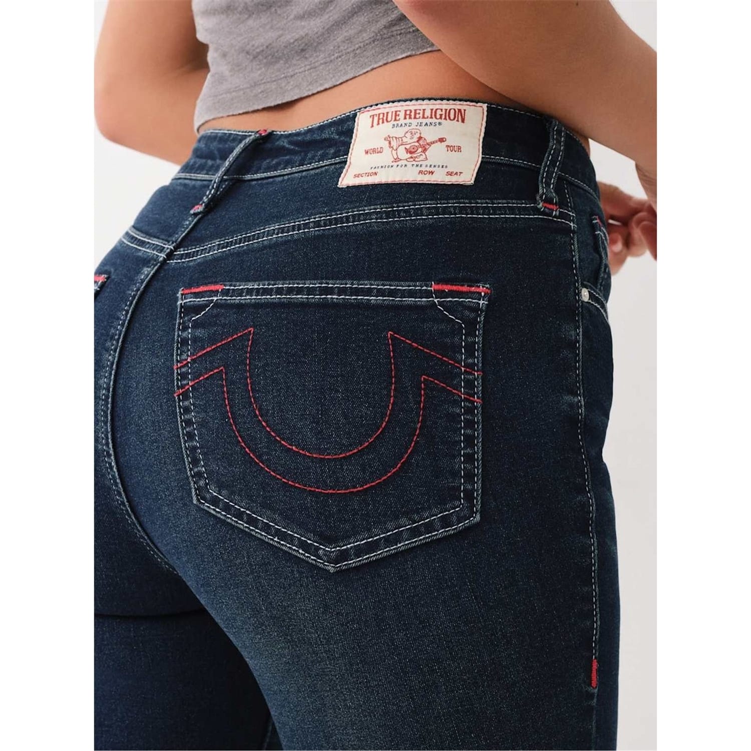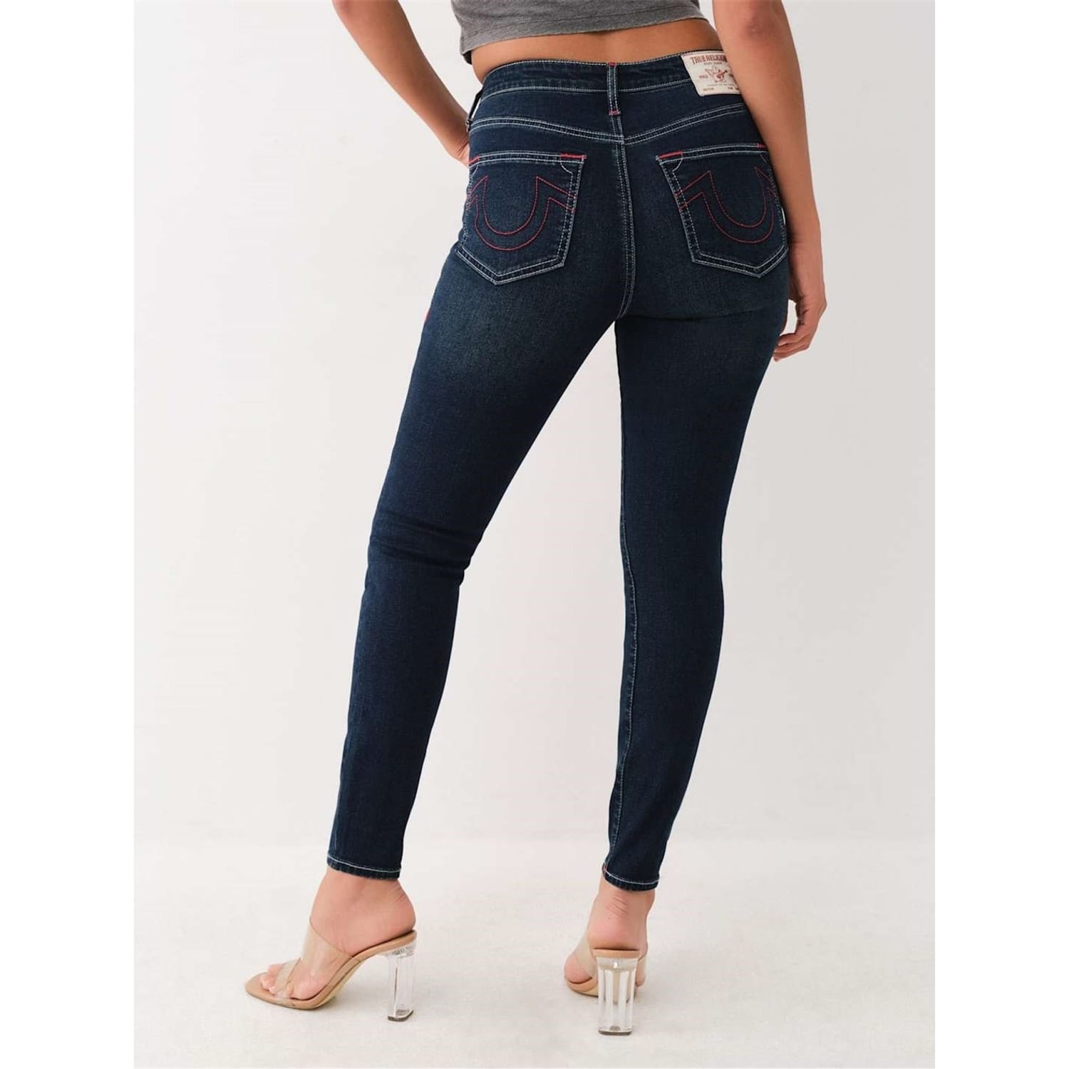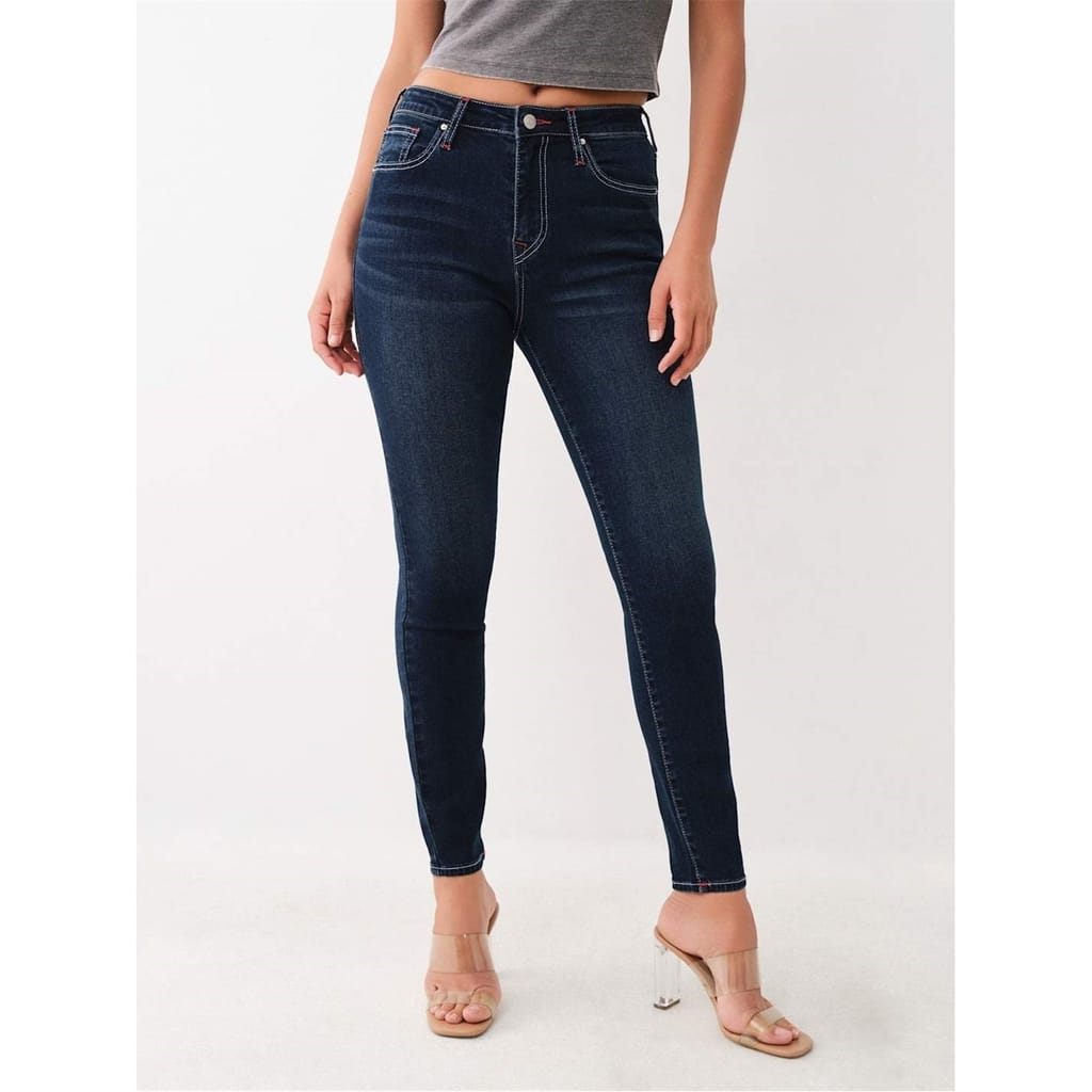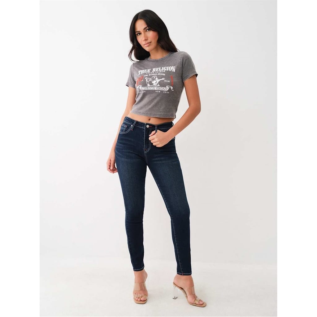 True Religion high-rise skinny jeans offer a sleek and modern silhouette. Crafted with precision, these jeans provide a comfortable fit while maintaining a stylish edge. Perfect for those seeking a contemporary look with a touch of sophistication. -