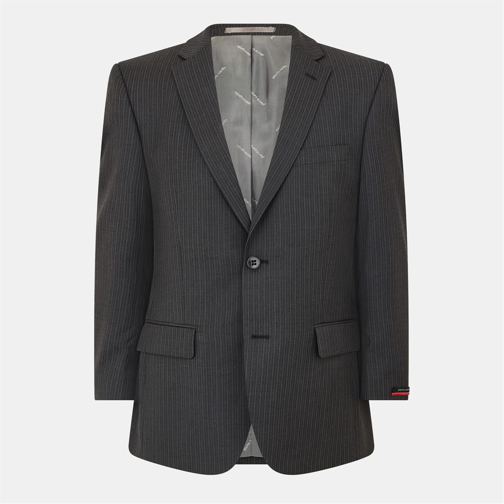 This Pierre Cardin suit jacket is a sophisticated choice for formal occasions. Featuring a notch collar and a button closure, it offers a regular fit with a straight hem. The jacket is adorned with a subtle stripe pattern and includes practical pockets, making it both stylish and functional. -