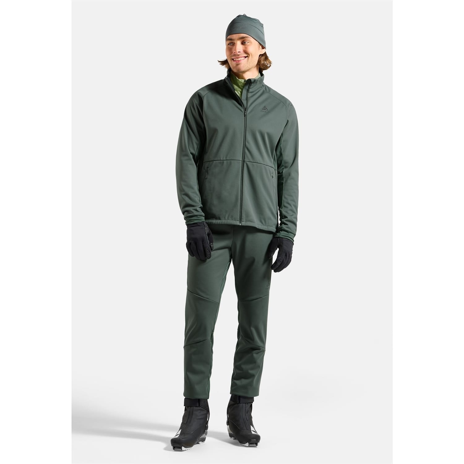 - The crossover layer for Nordic skiers and outdoor enthusiasts. Odlo's Essentials Warm cross-country jacket is a fresh take on their beloved Brensholmen jacket, now updated with a three-layer brushed softshell to block biting wind. Stretch jersey panels on the back and underarms add breathability where it's needed most. Features two zippered pockets, an adjustable hem and fitted cuffs that easily slide under gloves. Just as comfortable for dusk laps on freshly groomed snow as it is for cool, dark night runs. Versatility and performance for the winter athlete.