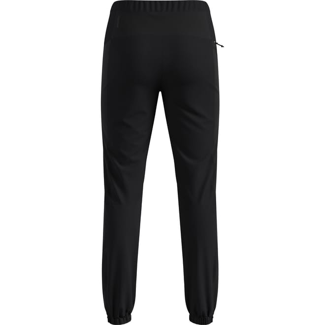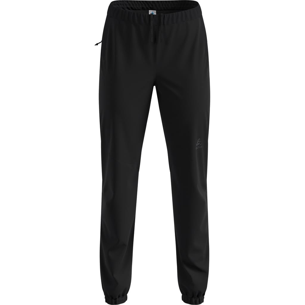 Odlo's essential track pants are designed for athletic pursuits, featuring a regular fit and an elasticated waistband with a drawstring for a secure fit. These pants include practical zipped pockets and a logo embellishment, making them a functional choice for active wear. -