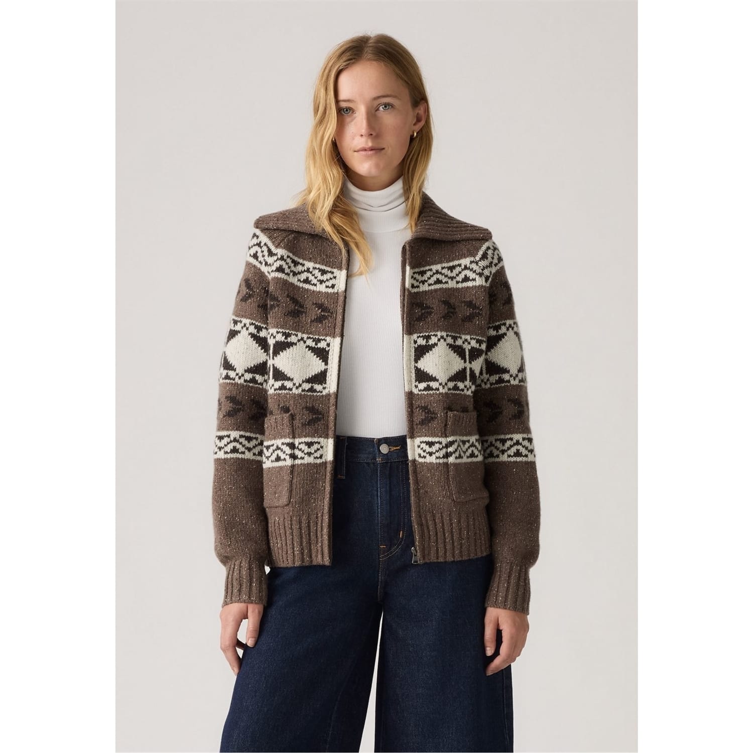This Levi's top features a distinctive Fair Isle pattern, perfect for adding a touch of style to your wardrobe. Designed with long sleeves and a shawl collar, it offers a regular fit for comfort. The top includes a zipper closure and ribbed cuffs, enhancing its practicality. A pocket embellishment adds a functional element to this versatile piece. -