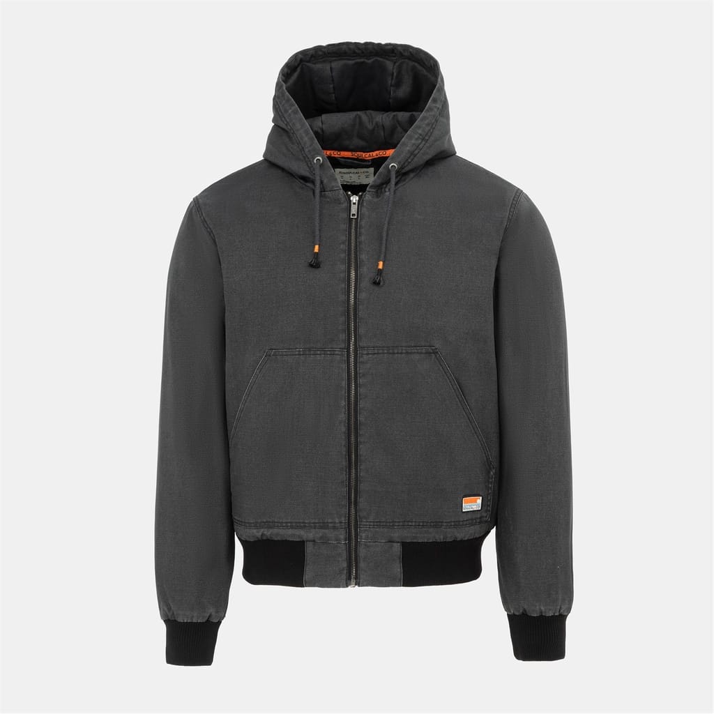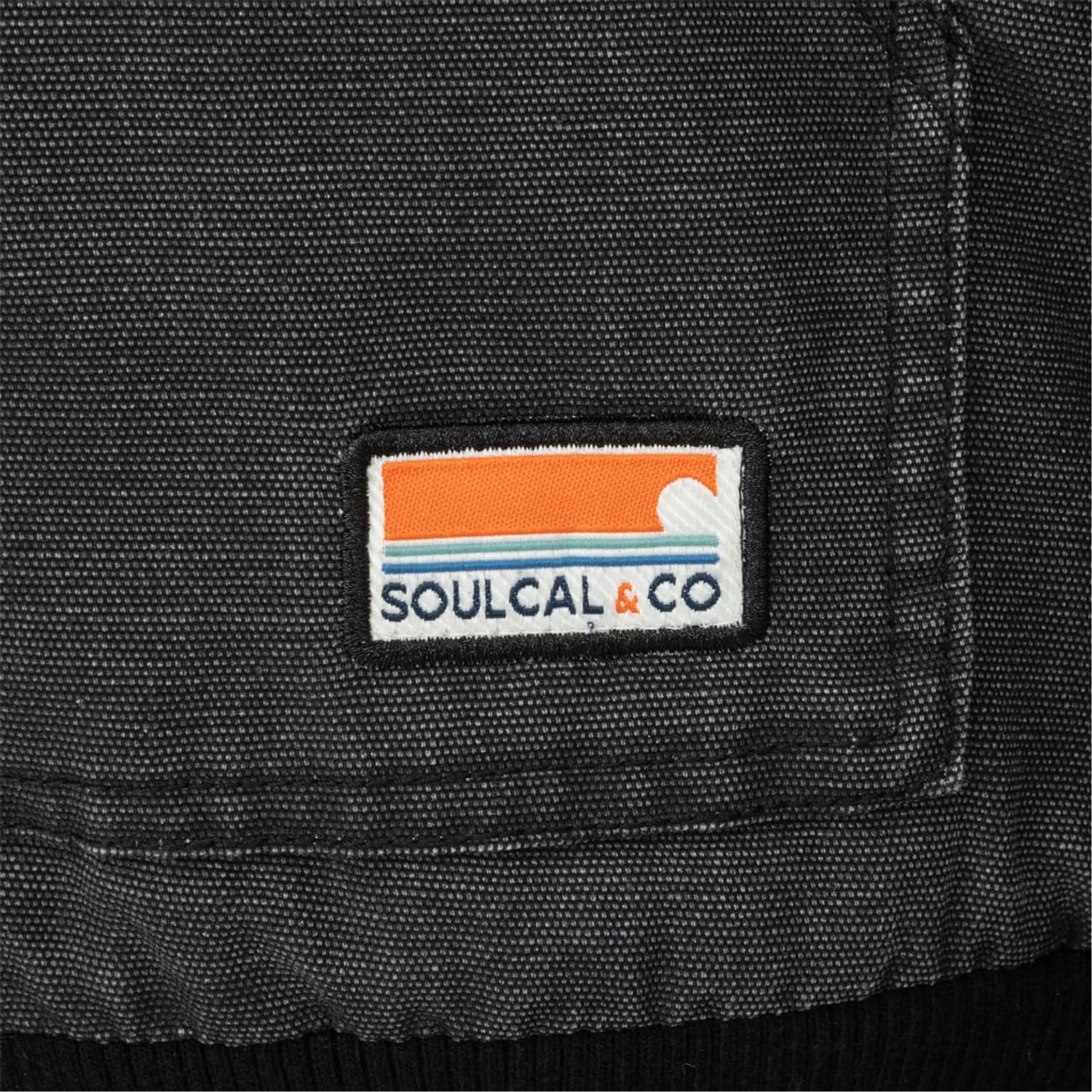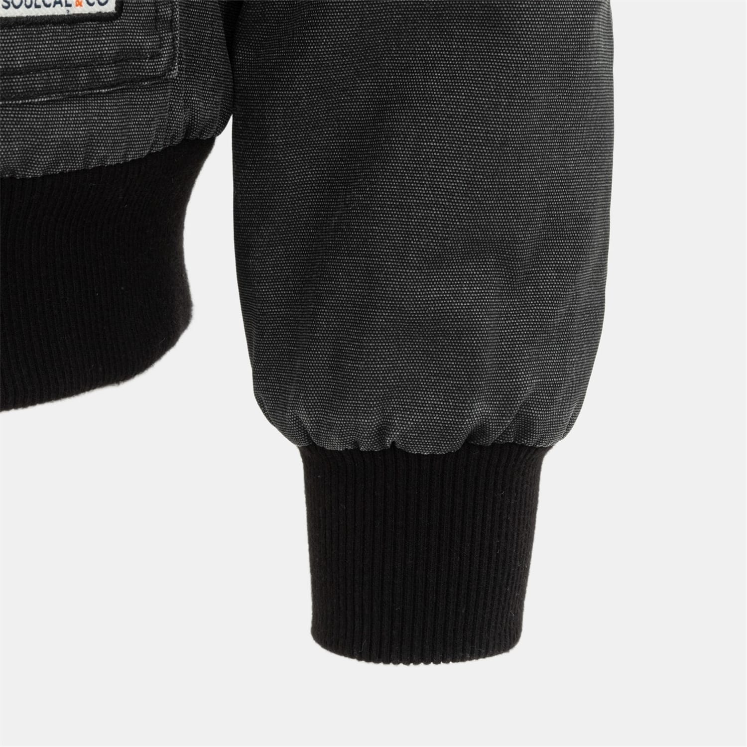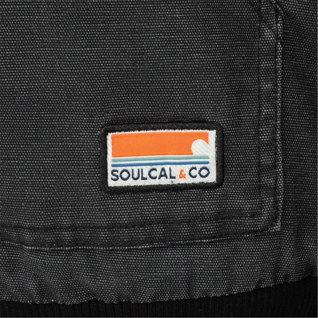 The Soulcal bomber jacket features a short length and a hooded neckline, offering a stylish and practical design. It includes a zipper closure and a regular fit, ensuring comfort and ease of wear. The jacket is adorned with a logo embellishment, adding a touch of brand identity. The solid pattern is complemented by ribbed cuffs and hem, providing a classic finish. -