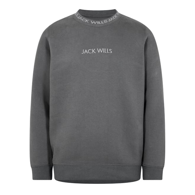 Jack Wills' Kids' Jacquard Crew Sweatshirt complements everyday youth casual wear with textured detailing and brand elements. The classic crew-neck neckline frames a jacquard pattern designed for young wardrobes.