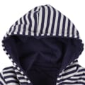 Lilly & Sid presents a stylish rain jacket featuring a hooded neck and a curved hem. This regular fit jacket is designed with a stripe pattern and includes practical pockets. The snap button closure ensures ease of wear, while the water-repellent attribute offers protection against the elements. Ideal for those seeking a blend of functionality and fashion. -