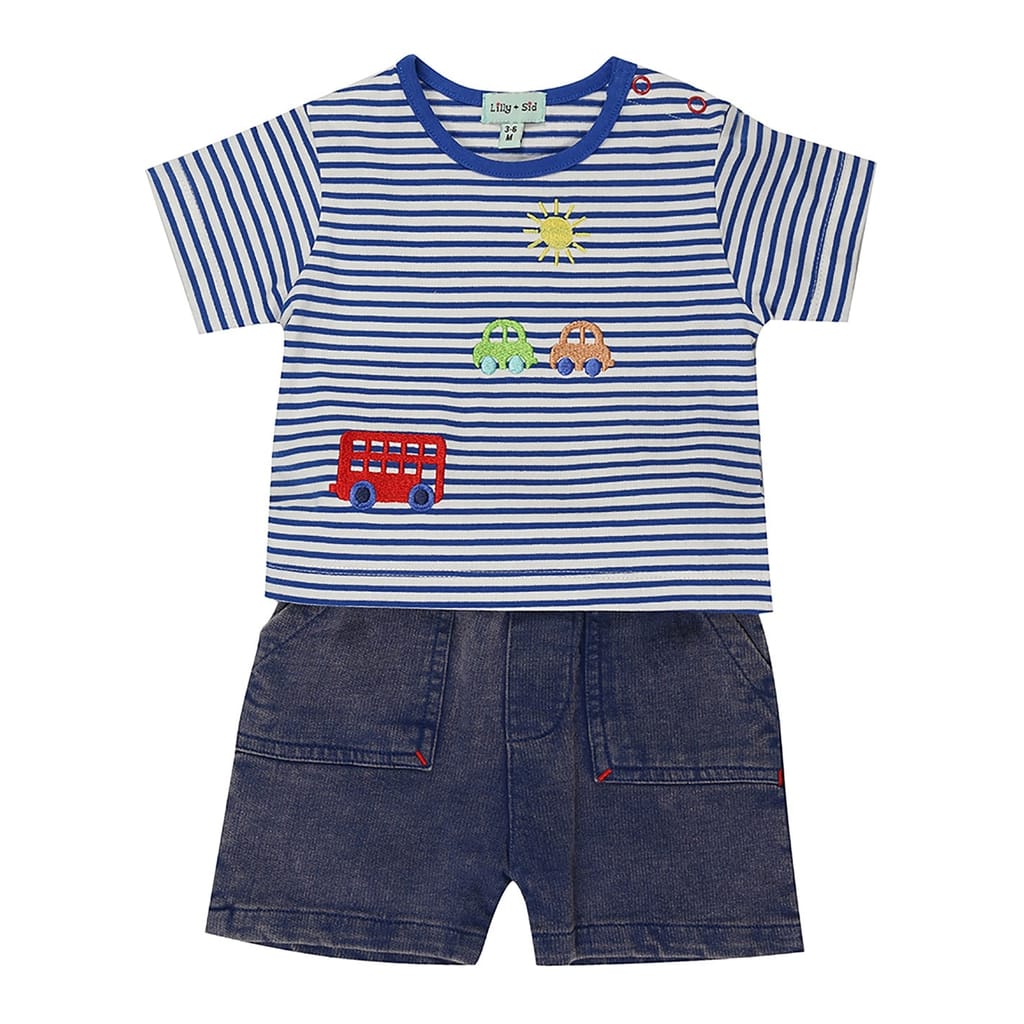 Discover the lilly & sid top short set, perfect for casual outings. This set features a stripe pattern t-shirt with a crew neck and plain short sleeves, offering a relaxed fit. The casual shorts complement the top, both adorned with pockets and embroidered details, adding a touch of style. Ideal for those seeking comfort and fashion in one ensemble. -