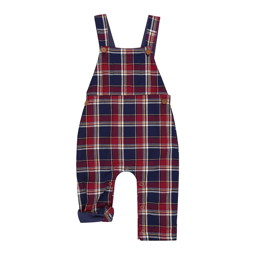 Lilly & Sid presents a plaid dungaree jumpsuit, perfect for casual occasions. This sleeveless piece features spaghetti straps and a button closure, offering a regular fit. The design is enhanced with practical pockets, making it both stylish and functional. -
