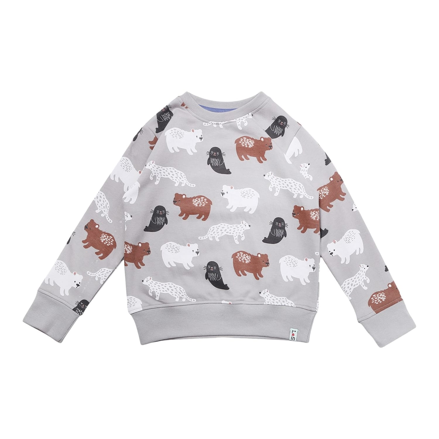 Discover the charm of Lilly & Sid's top, featuring a delightful animal pattern. This casual piece is designed with long raglan sleeves and a crew neck, offering a regular fit for comfort. The ribbed cuffs add a touch of detail, while the logo embellishment subtly enhances its appeal. -