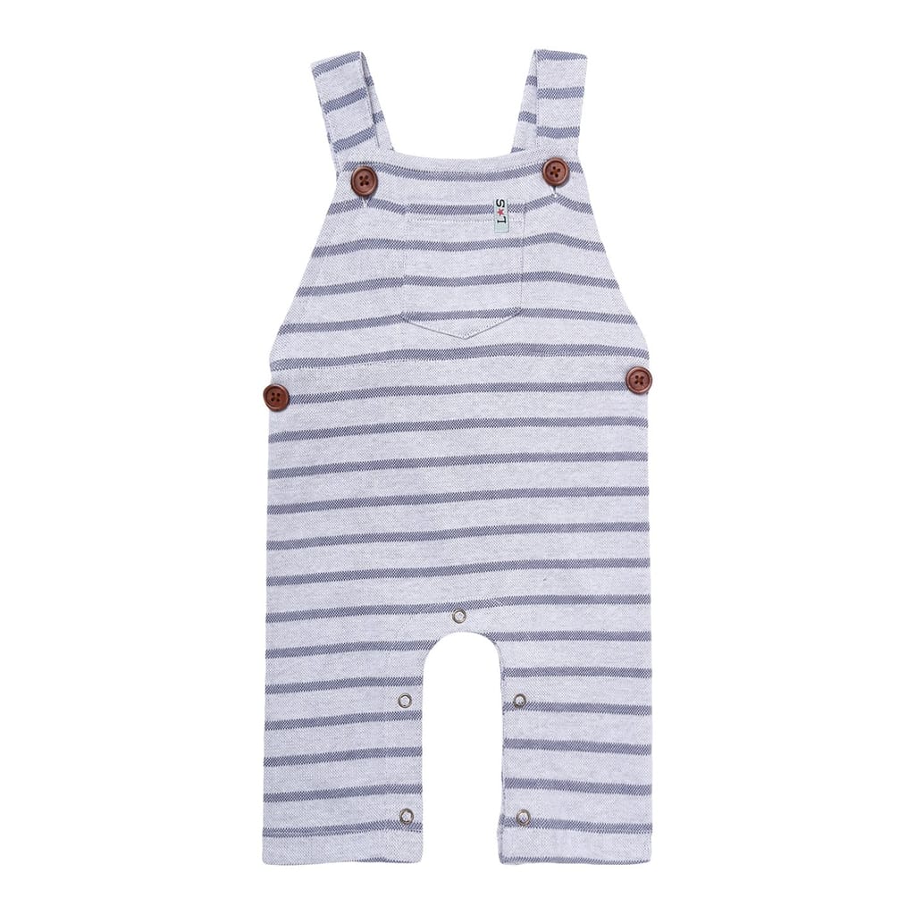 Lilly & Sid presents a charming dungaree jumpsuit featuring a horizontal stripe pattern. This sleeveless piece with spaghetti straps offers a regular fit and is adorned with practical pockets. The button closure adds a touch of convenience, making it a versatile addition to any wardrobe. -