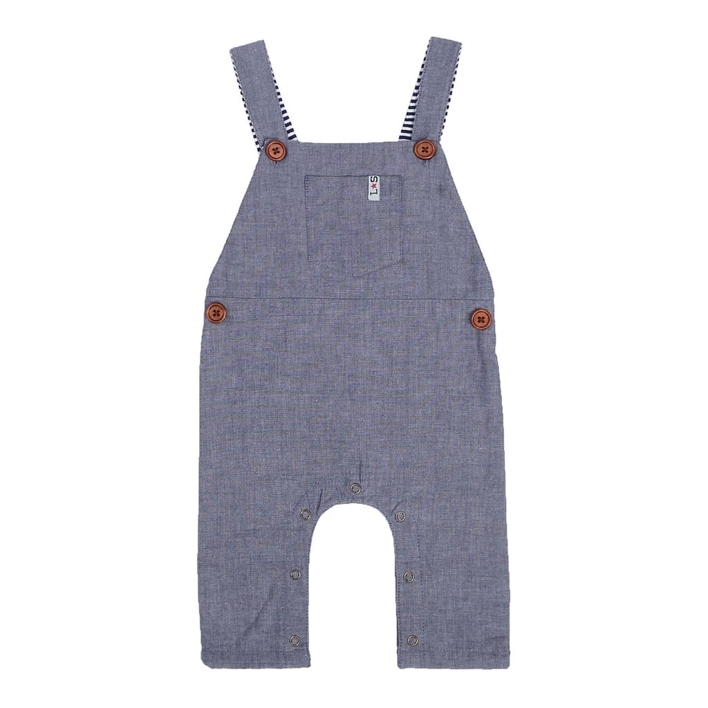 Discover the charm of Lilly & Sid's dungaree romper, designed with spaghetti straps and a sleeveless silhouette. This regular fit piece features convenient button and snap closures, along with practical pockets for added functionality. -