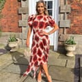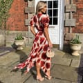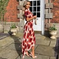 Our Rust Printed Puff Sleeve Zig Zag Hem Pleated Midi Dress is the perfect occasion dress. Featuring soft satin fabric, a round neckline, a pleated midi skirt with a zig zag hem, puff sleeves and a zip up back. Team it with some cute heels to complete the look!