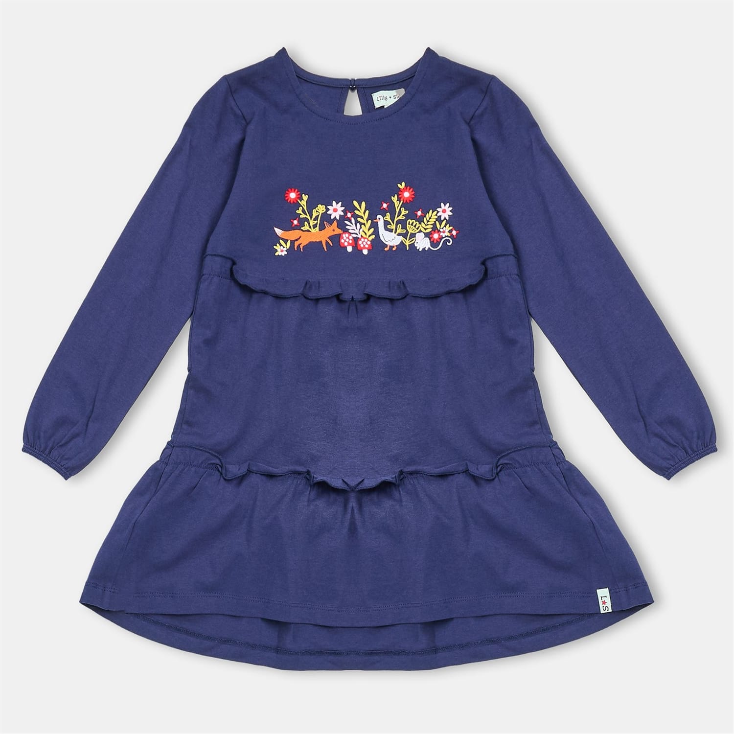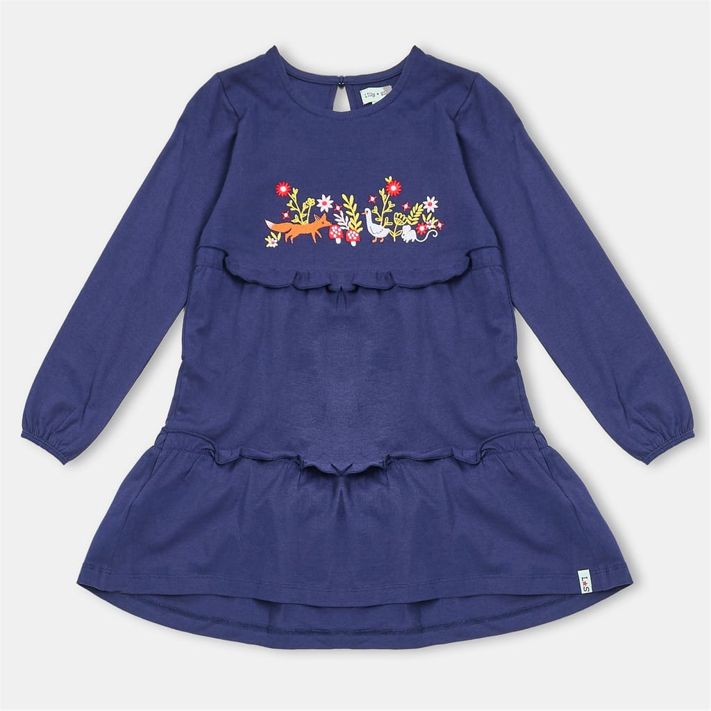 This Lilly & Sid jersey dress features a charming floral pattern, perfect for adding a touch of elegance to any wardrobe. Designed with a knee-length hi-lo hem and a classic crew neck, it offers a stylish silhouette. The long sleeves provide added coverage, making it suitable for various occasions. -