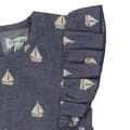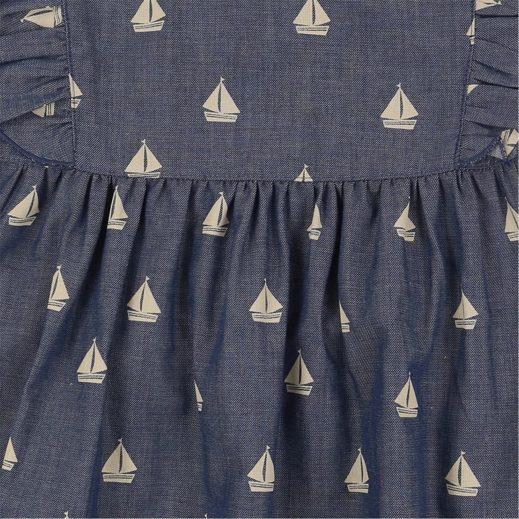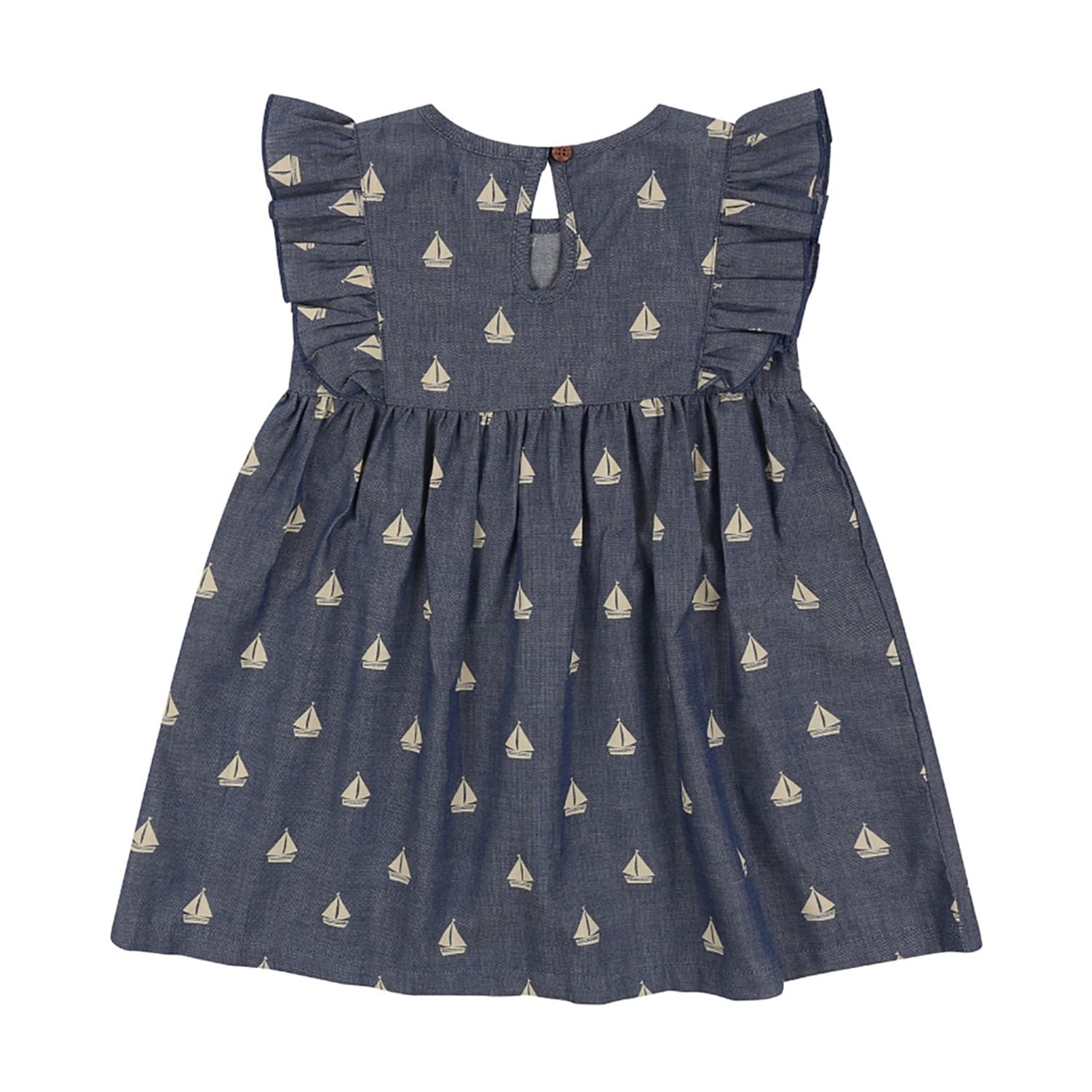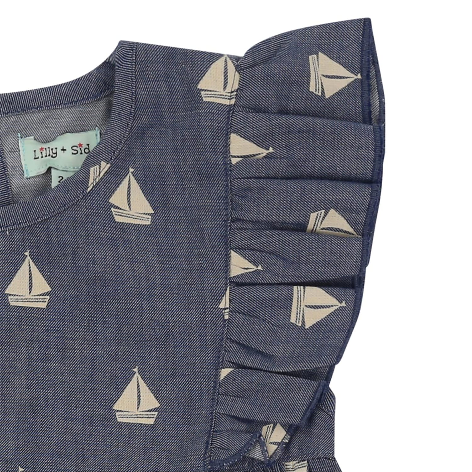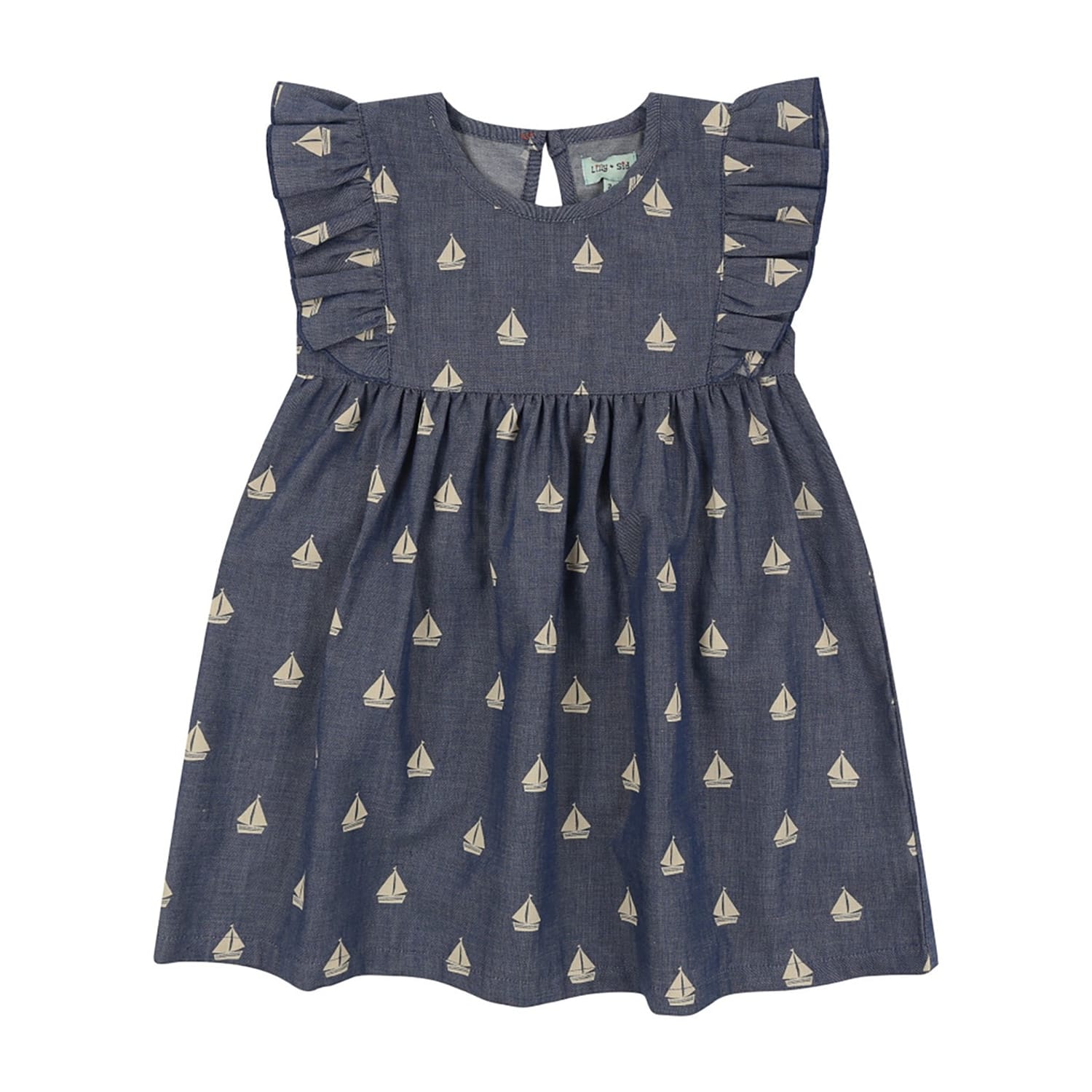 This Lilly & Sid dress features a charming knee-length A-line silhouette, perfect for any occasion. The crew neck design is complemented by playful ruffle embellishments, adding a touch of whimsy. The dress showcases a vibrant graphic print, making it a standout piece in any wardrobe. -