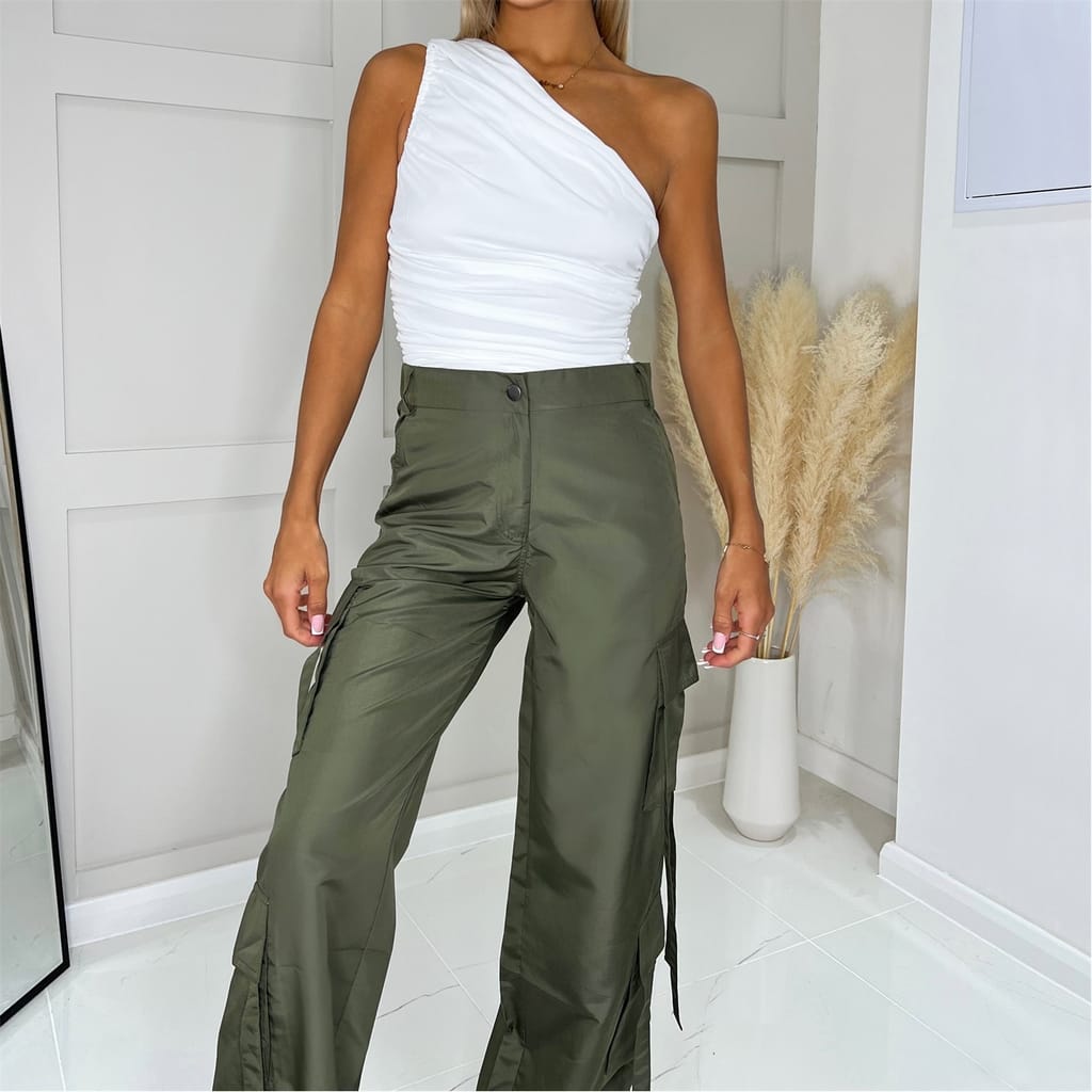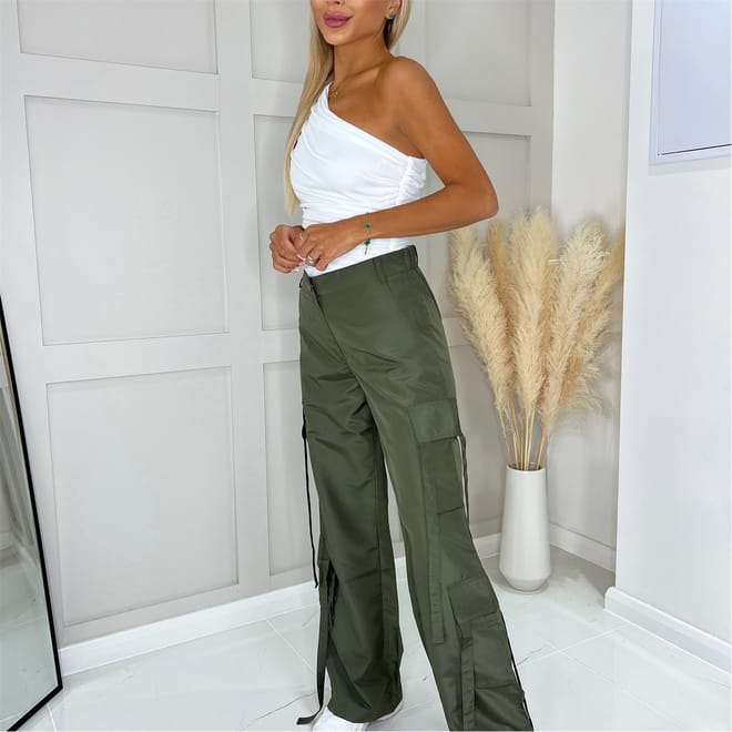 Stay on trend this season and invest in a pair of these Strap Detail Cargo Pants. These wide leg pants feature a button and zip fly front, belt loops and 7 pockets with strap detail. Pair with a crop tee or bodysuit and trainers for a trendy look.