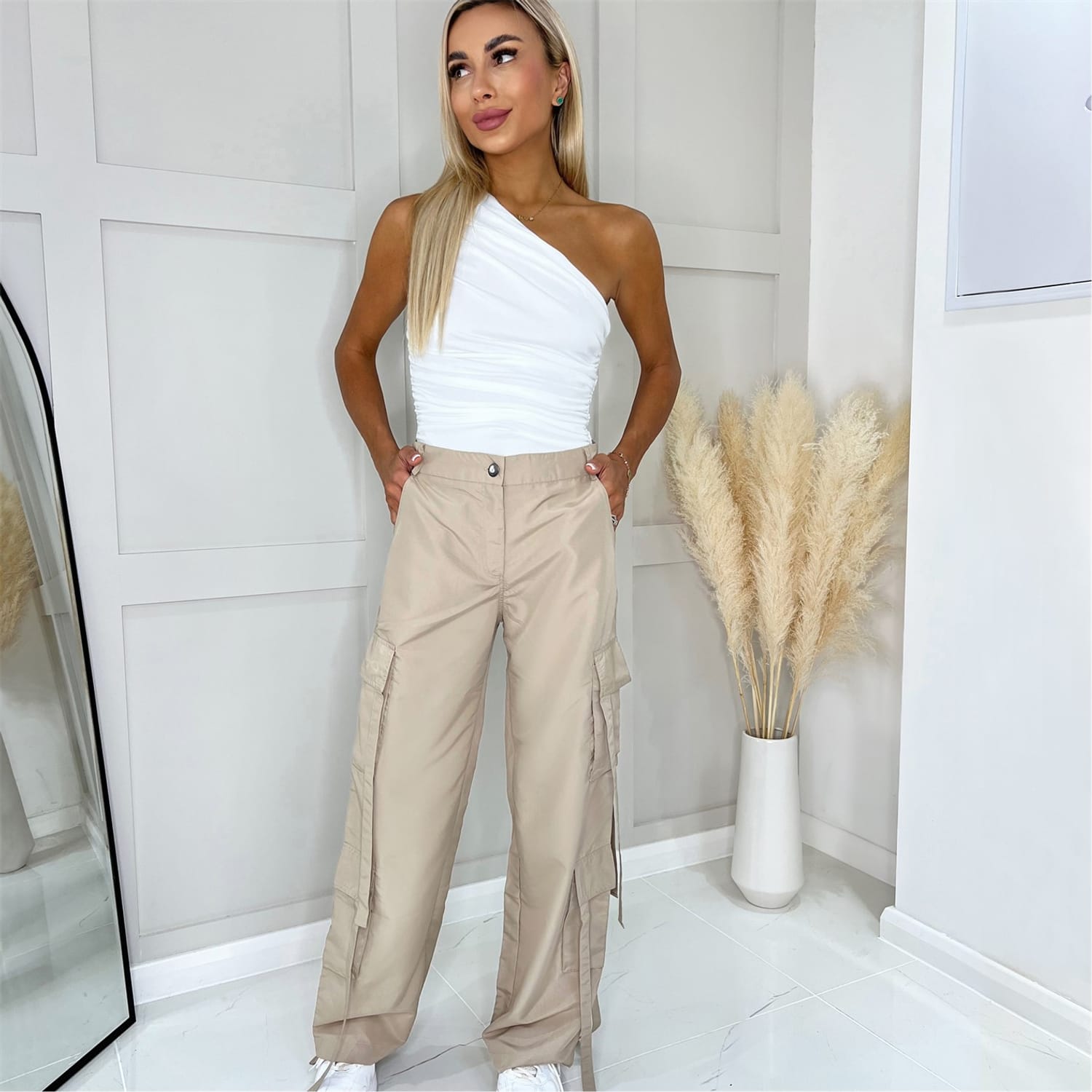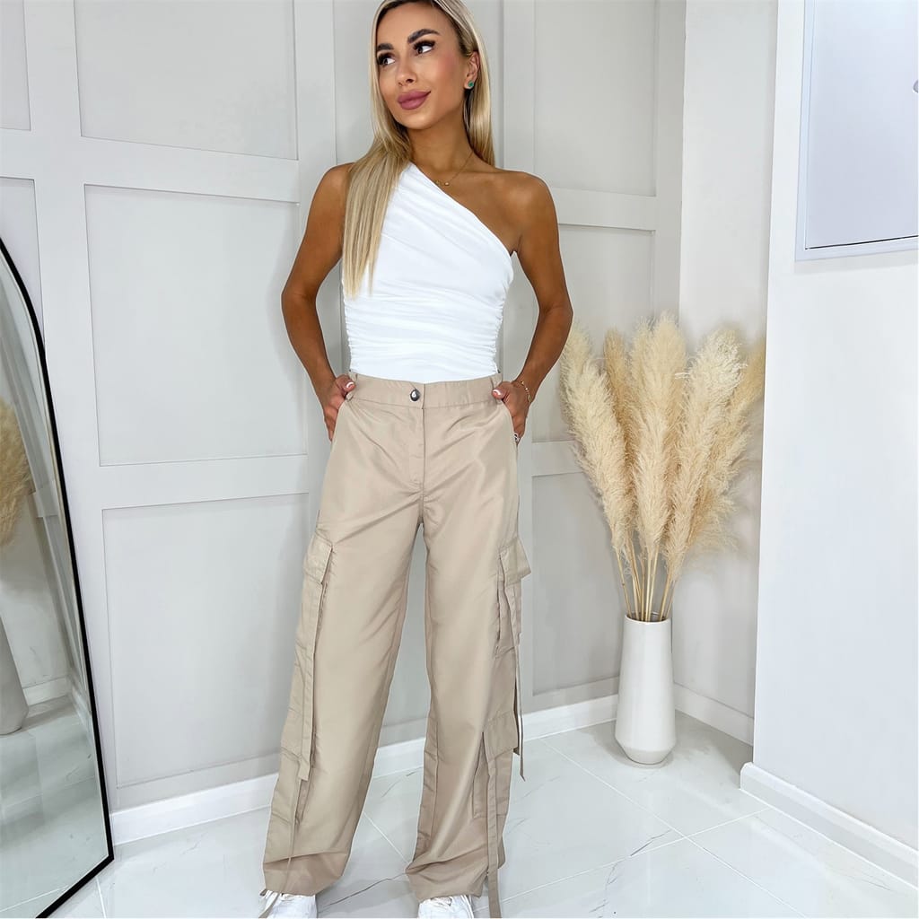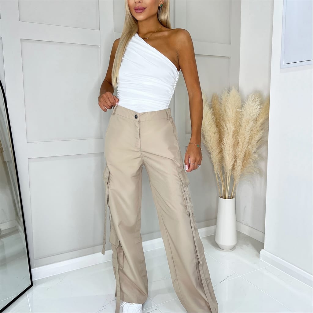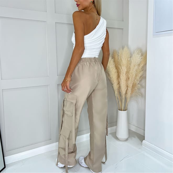 Stay on trend this season and invest in a pair of these Strap Detail Cargo Pants. These wide leg pants feature a button and zip fly front, belt loops and 7 pockets with strap detail. Pair with a crop tee or bodysuit and trainers for a trendy look.