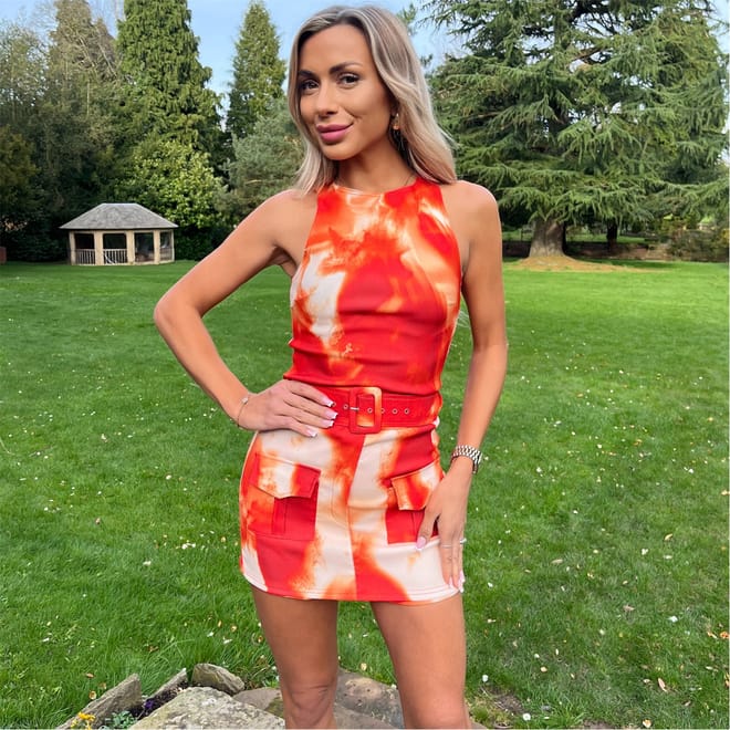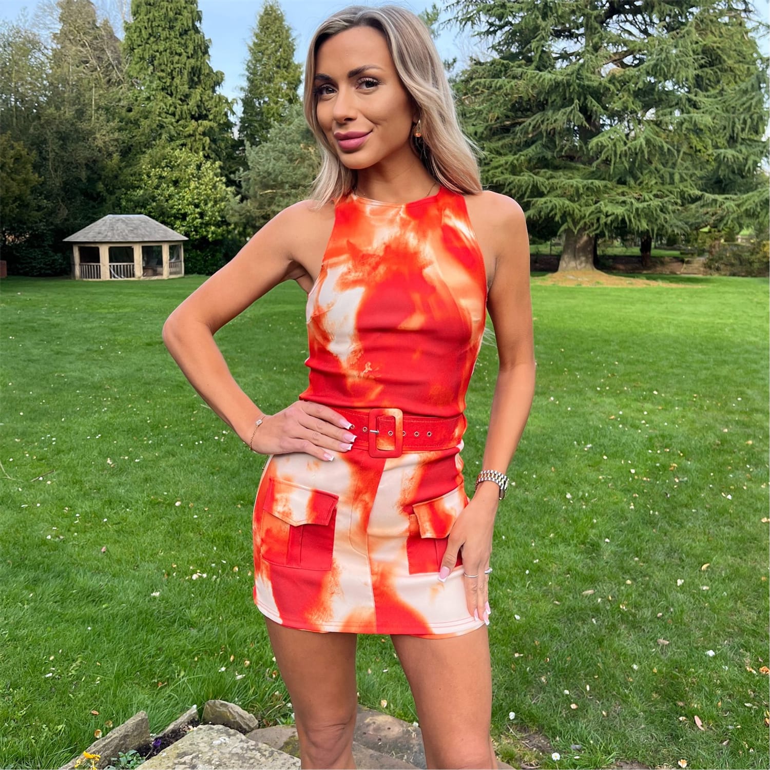 Unsure whether to wear a mini dress or shorts Our Orange Tie Dye Round Neck Belted Skort Cargo Playsuit is the perfect combination of both! Featuring a round neckline, belted waist, front pockets and zip up back. Wear it with sandals or trainers during the day or dress it up with heels for a summer night out.