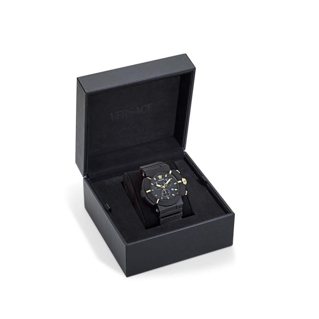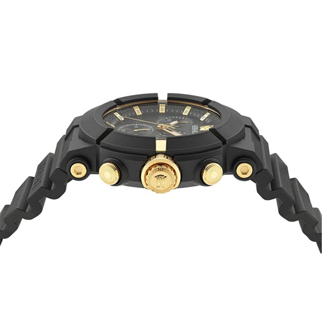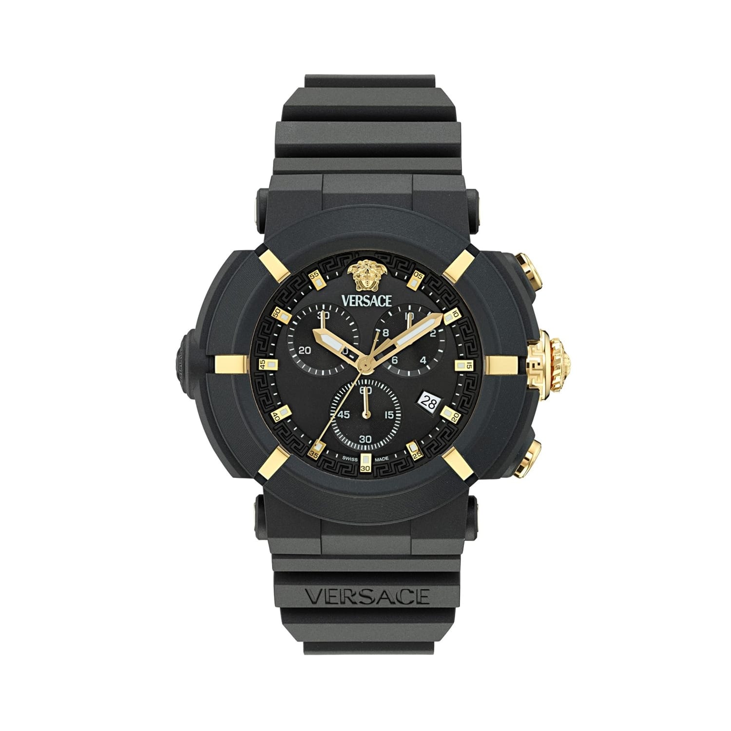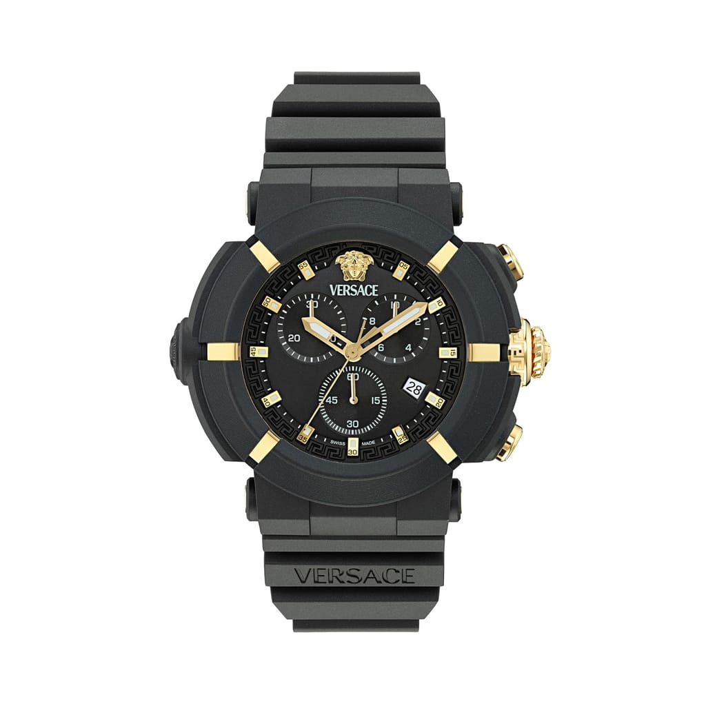 Discover the Versace wrist watch, a perfect blend of style and functionality. This analogue timepiece features a striking black dial, complemented by a durable rubber strap. Designed for casual collections, it offers water resistance up to 50m, making it a reliable choice for everyday use. Elevate your accessory game with this elegant watch. -