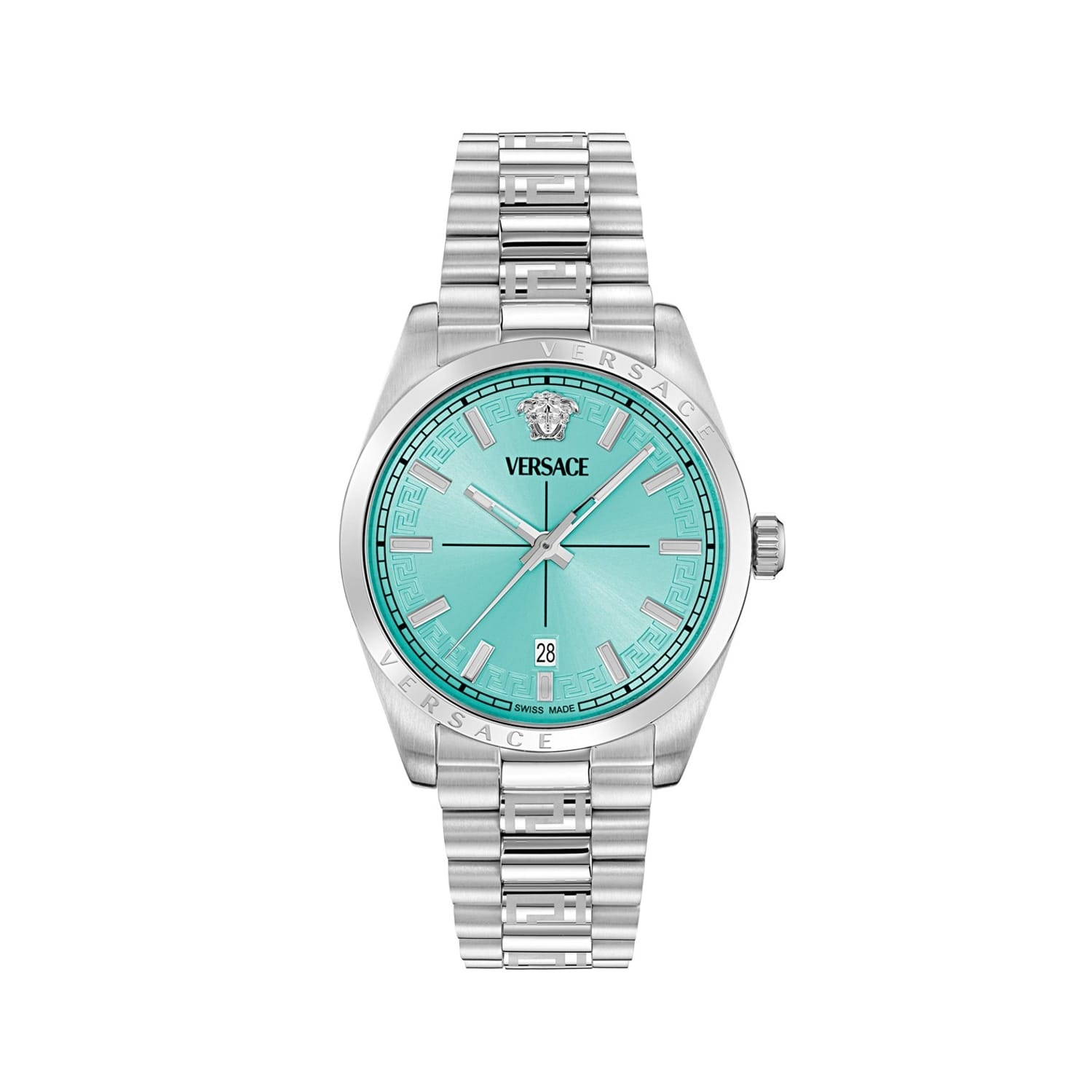 Discover the elegance of Versace with this exquisite wrist watch. Featuring a turquoise dial, this analogue timepiece is a perfect blend of style and functionality. The steel bracelet strap adds a touch of sophistication, making it an ideal choice for casual occasions. Elevate your accessory collection with this stunning watch. -