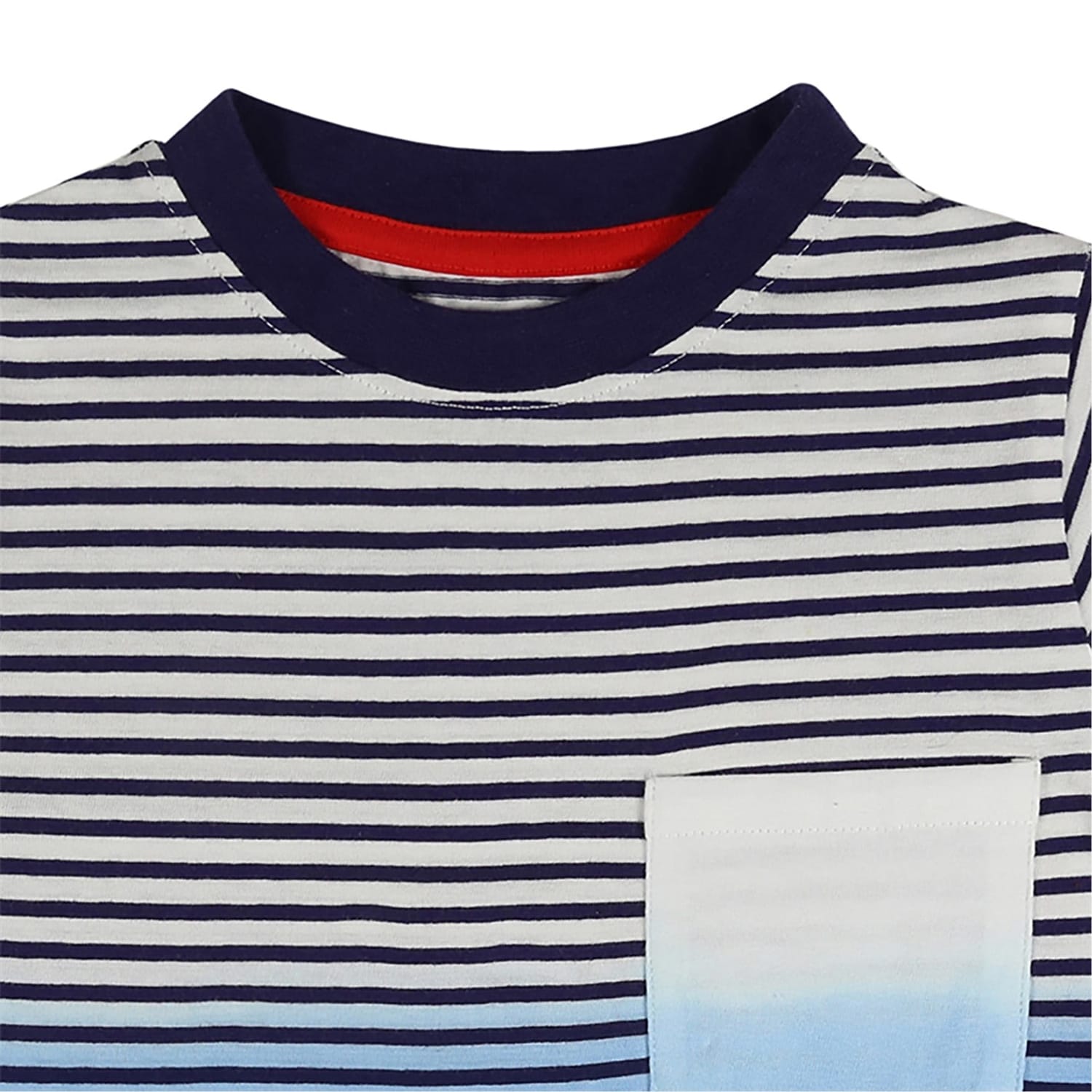 This Lilly & Sid top features a striking ombre stripe pattern, perfect for casual occasions. Designed with a regular fit, it offers comfort and style. The short sleeves and crew neck add to its relaxed appeal, while a pocket embellishment provides a practical touch. -