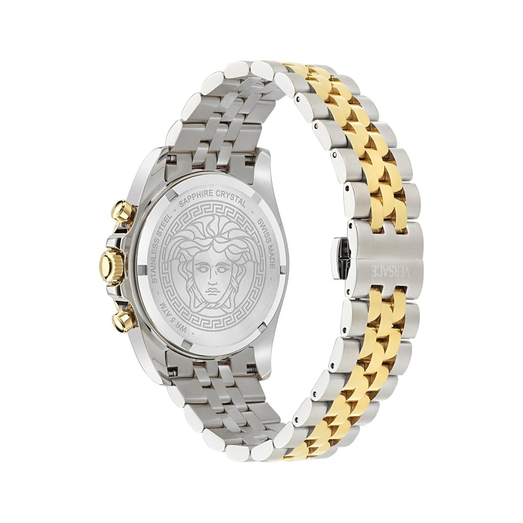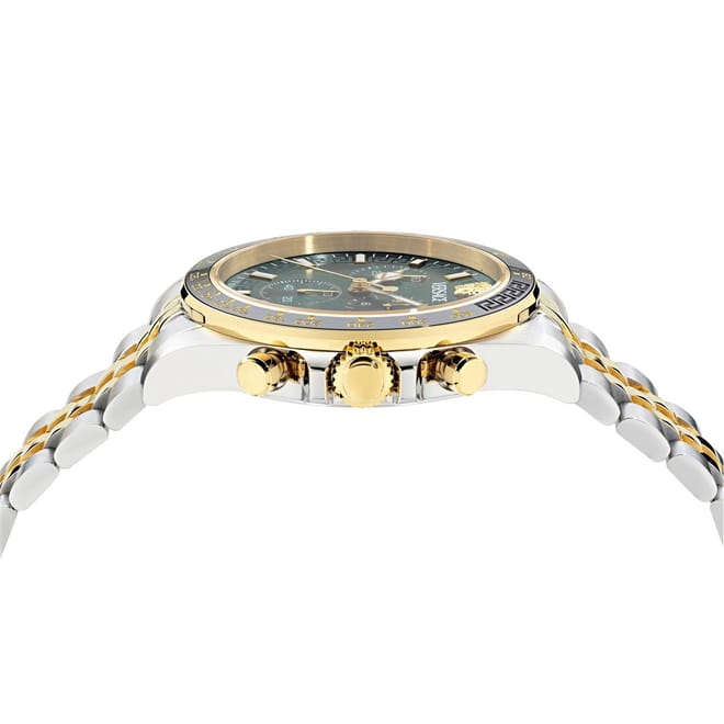 Discover the elegance of Versace with this wrist watch, featuring a striking green dial. The analogue display is complemented by a durable steel bracelet strap, offering both style and resilience. With water resistance up to 50m, this watch is perfect for everyday use. Part of the casual collection, it combines functionality with a touch of luxury. -