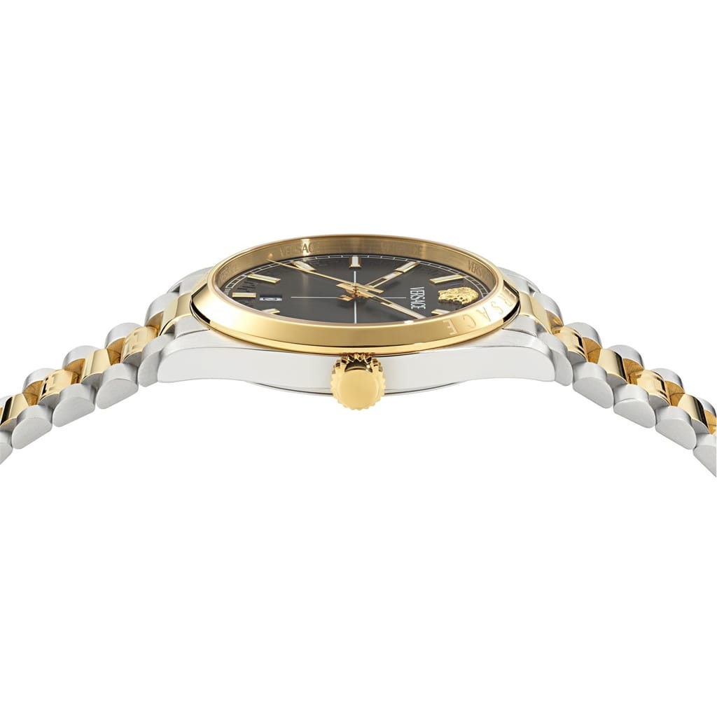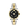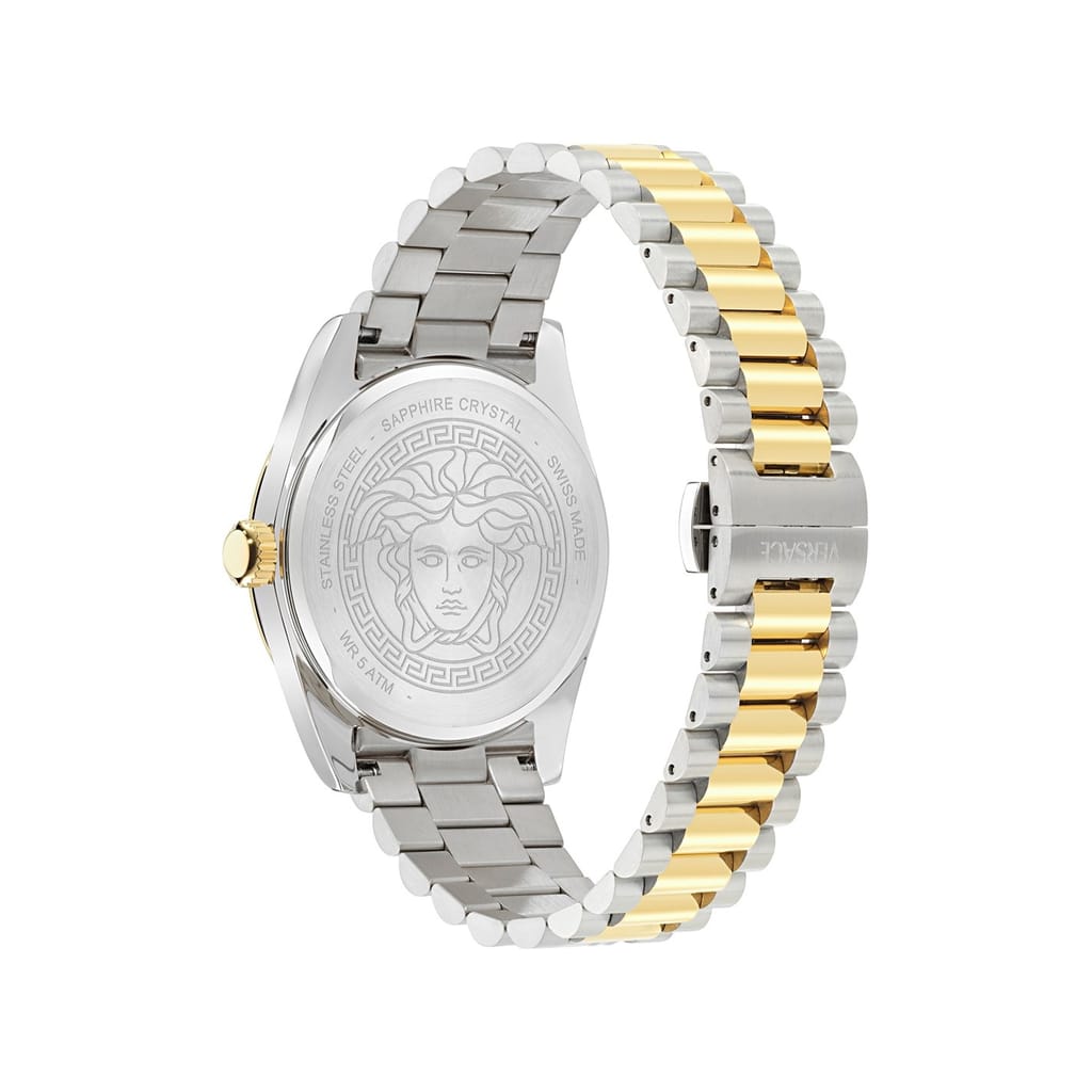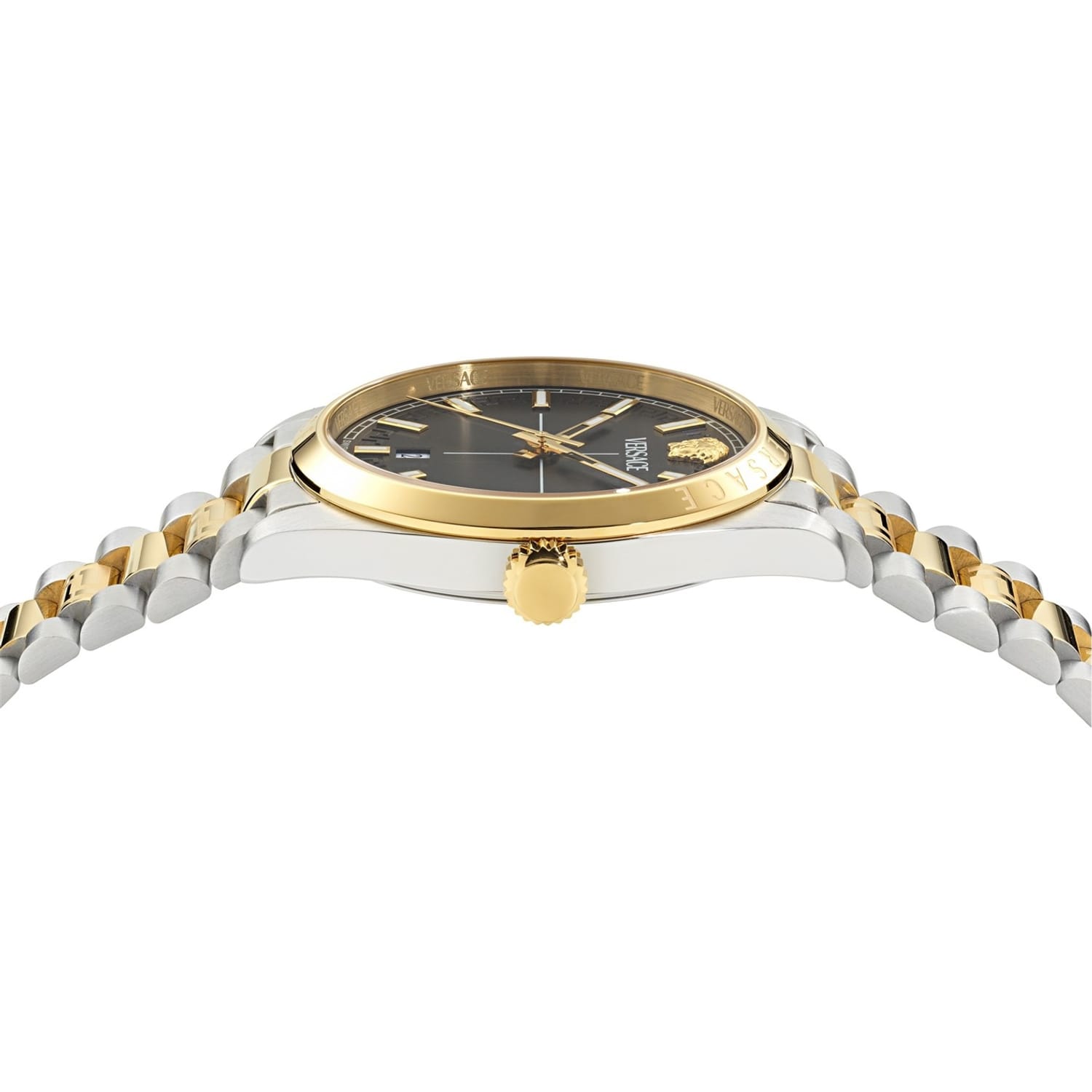 Discover the elegance of Versace with this wrist watch, featuring a sleek black dial and an analogue display. The steel bracelet strap adds a touch of sophistication, while the 50m water resistance ensures durability. Perfect for those who appreciate timeless style and quality craftsmanship. -